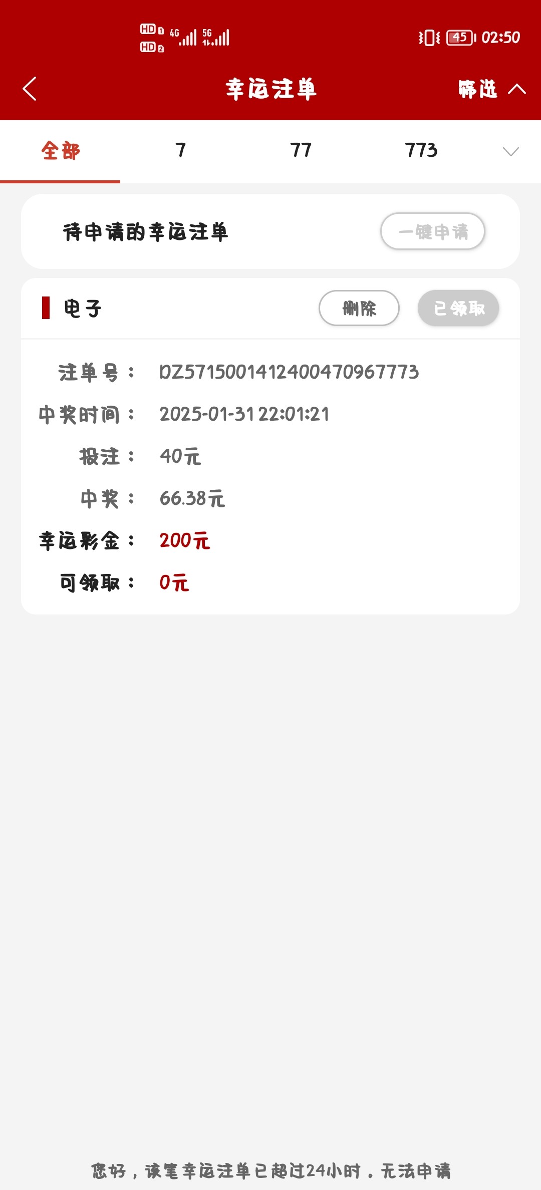 系统自动抓取有的话直接在我的幸运注单申请幸运注单那边没有就没有你这也没有盈利申请不了