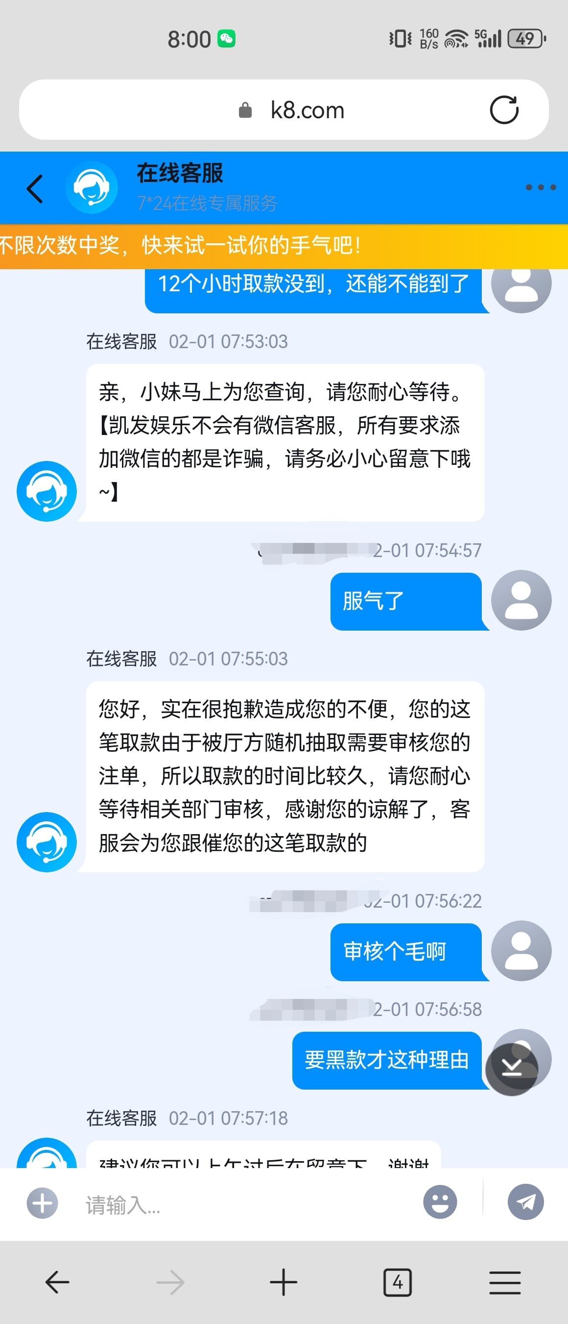 不会黑,上次我炸了1.5w倍,也是注单审核,审核了10个小时吧到账了。你应该是在这没怎么玩吧,经常出款后面就遇不到这种情况了,都是秒到。