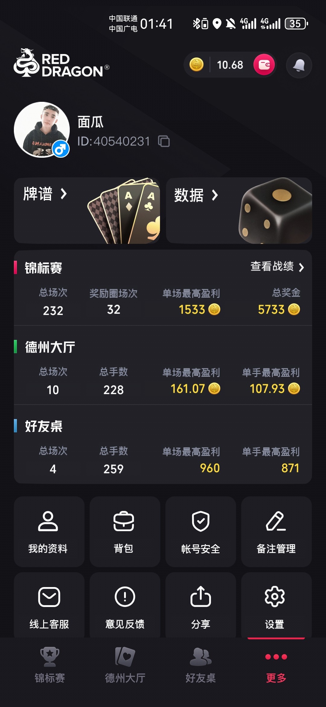 感觉全是人机昨天晚上玩了,玩德州10对子遇k对子,玩牛牛那就更恶心了牛九遇牛牛,还有一把我是牛牛以为稳了庄家也是牛牛正好大我一张牌,炸金花顺子遇到顺金我这还是新号就这么杀