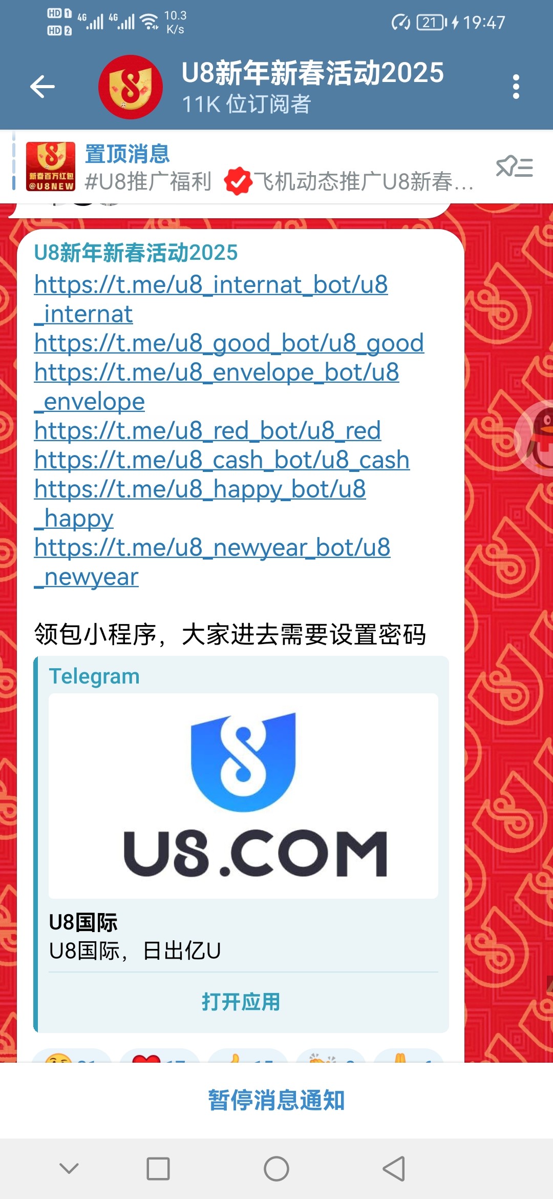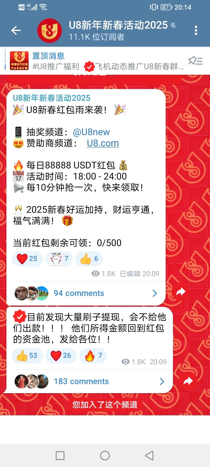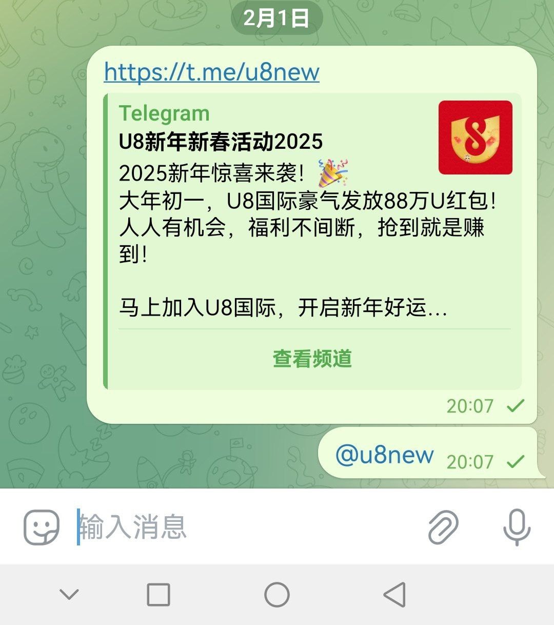 进入频道找到领包小程序注册账号,然后挂着等u红包,有红包自动弹窗,不用流水直接提现,抢的都是u,10分钟一波,每天18-24点,红包发完为止