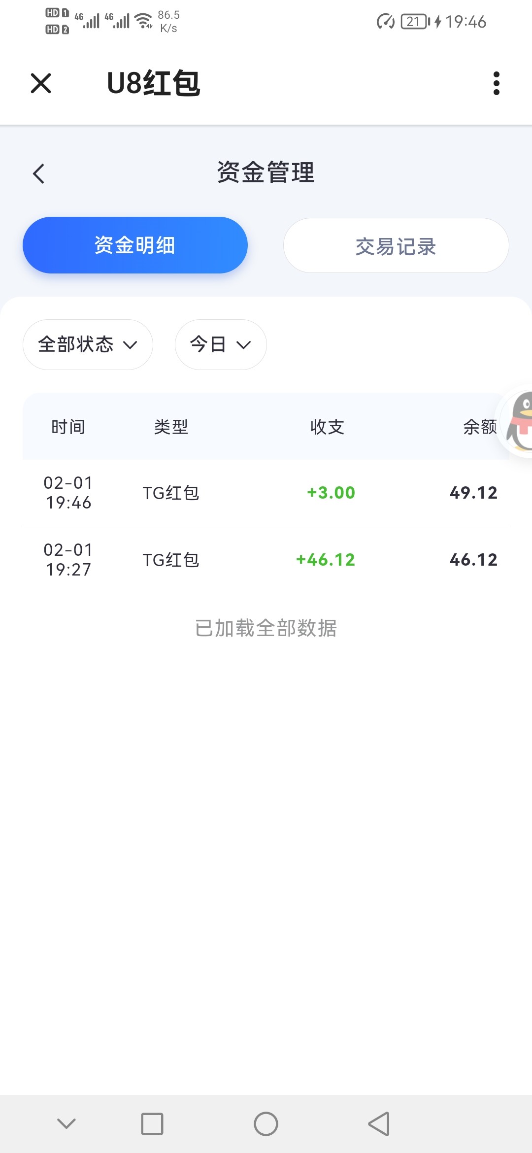 感谢到账,抢不过他们,就抢了6个u,明天继续抢
