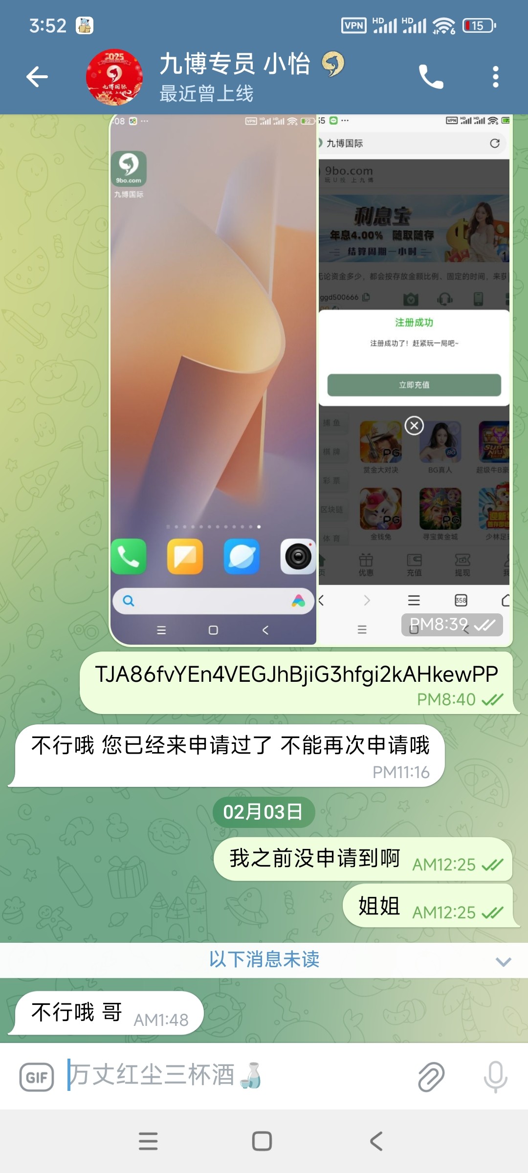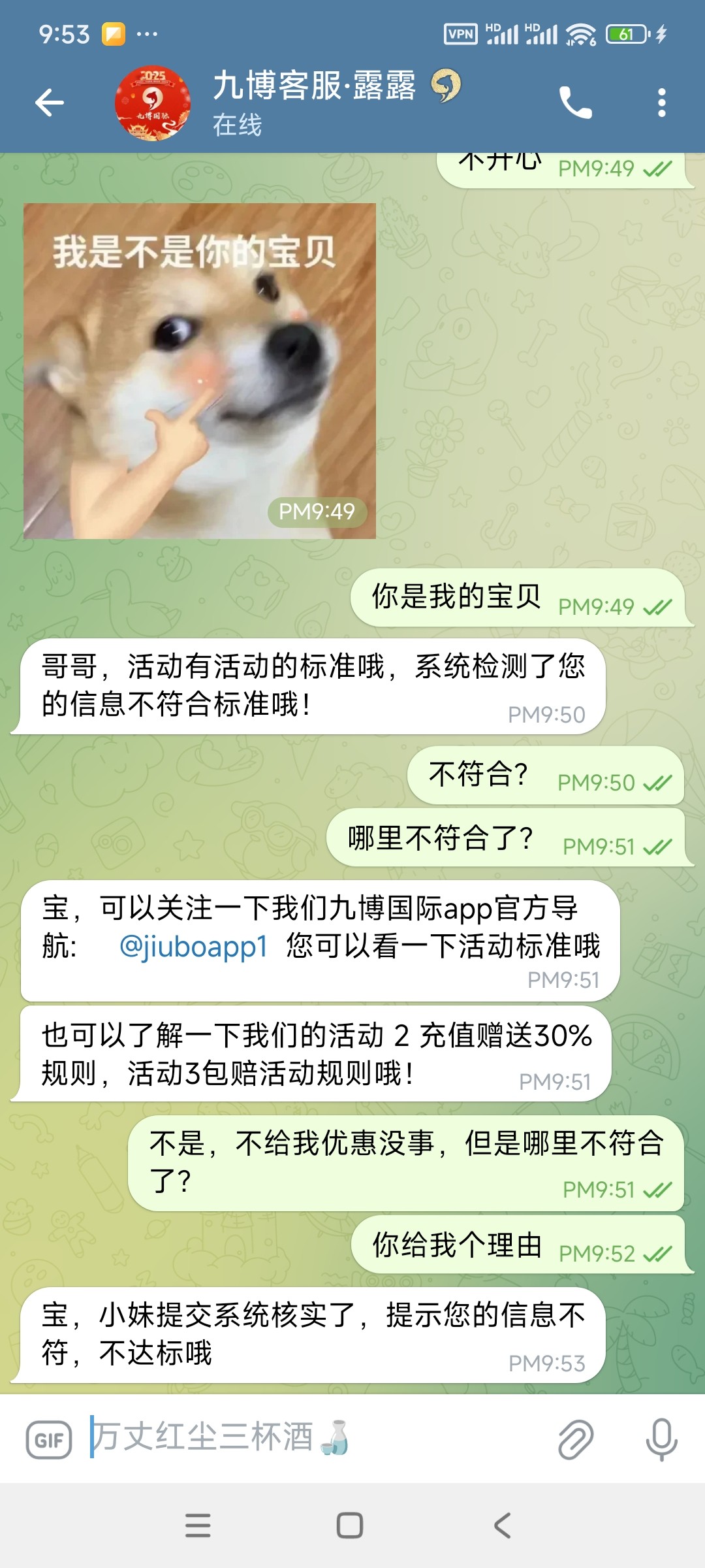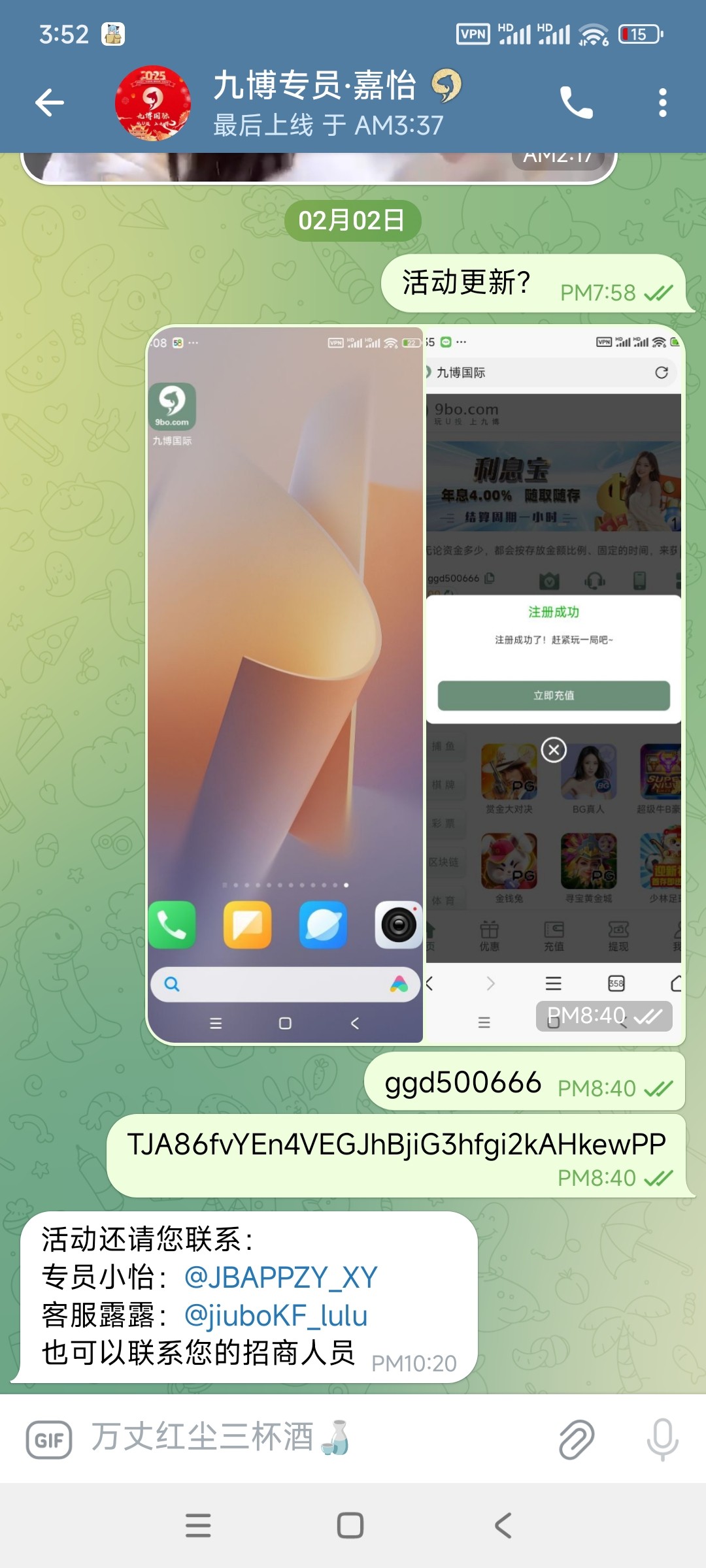 请您提供以下 1.提供您的账号 (文字形式发给我)2.提供下载app注册截图 3.提供绑定APP的提现地址(文字形式发给我)4:您是从哪里了解到我们九博国际娱乐城的呢?