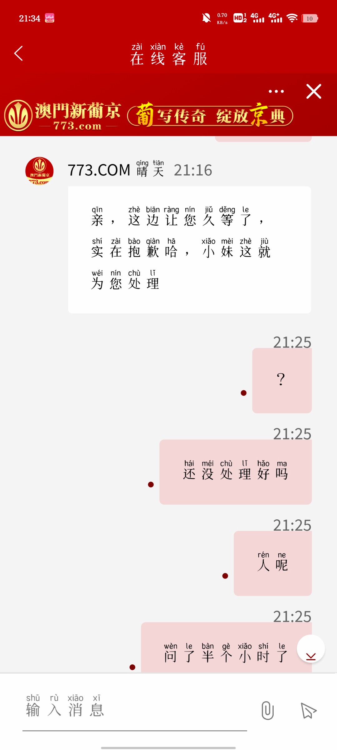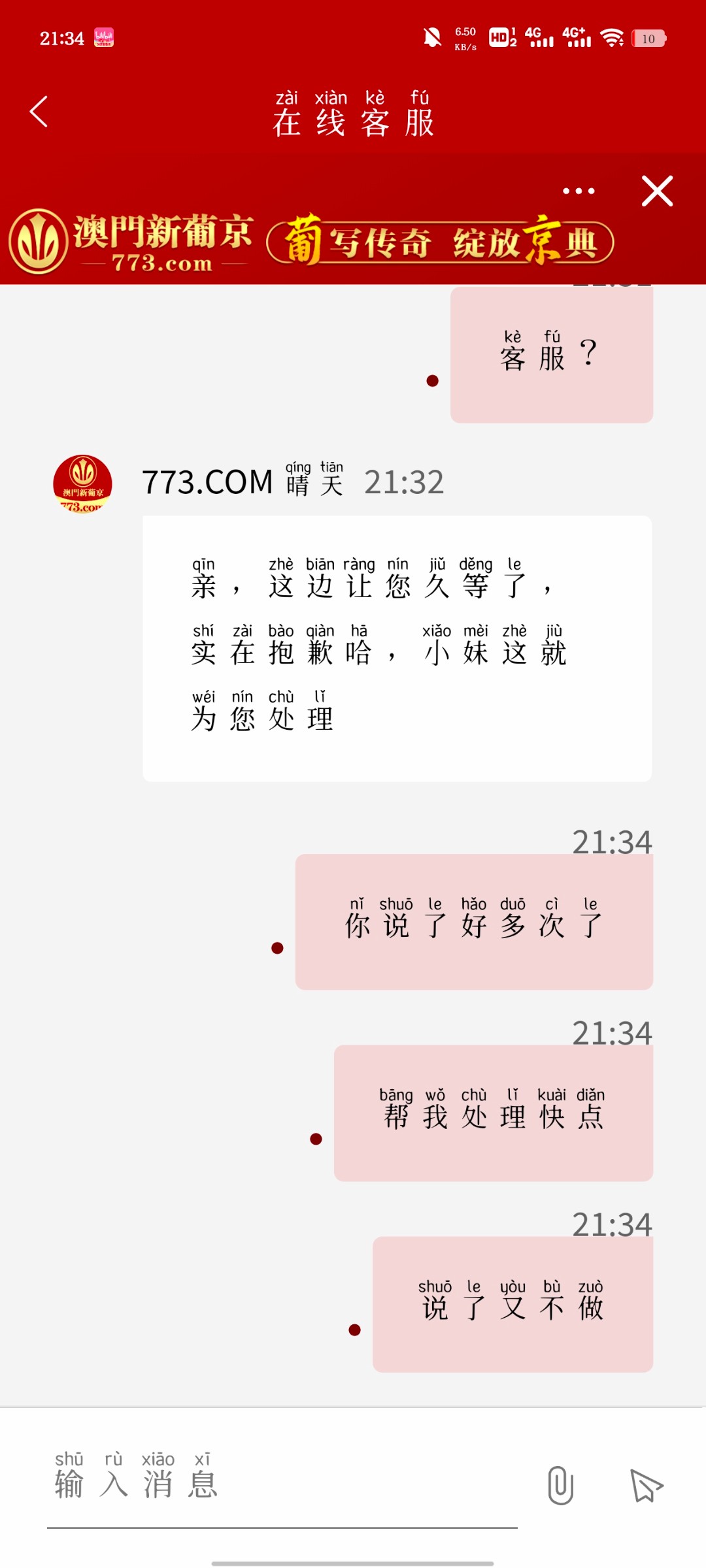 773客服死人吧,十点问到现在都没送,都不带回复的