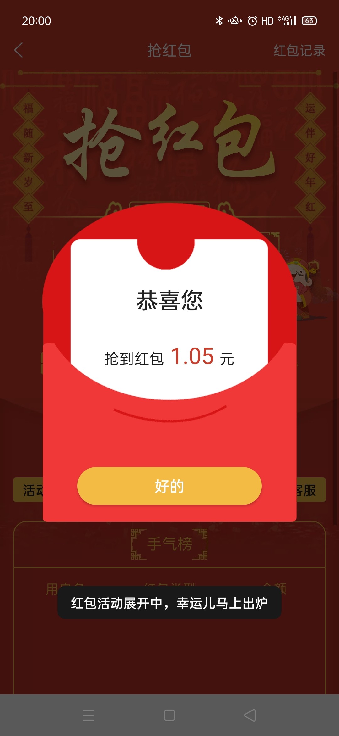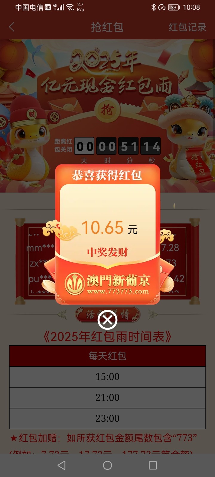 差点错过 刚好抢了个尾数5的红包