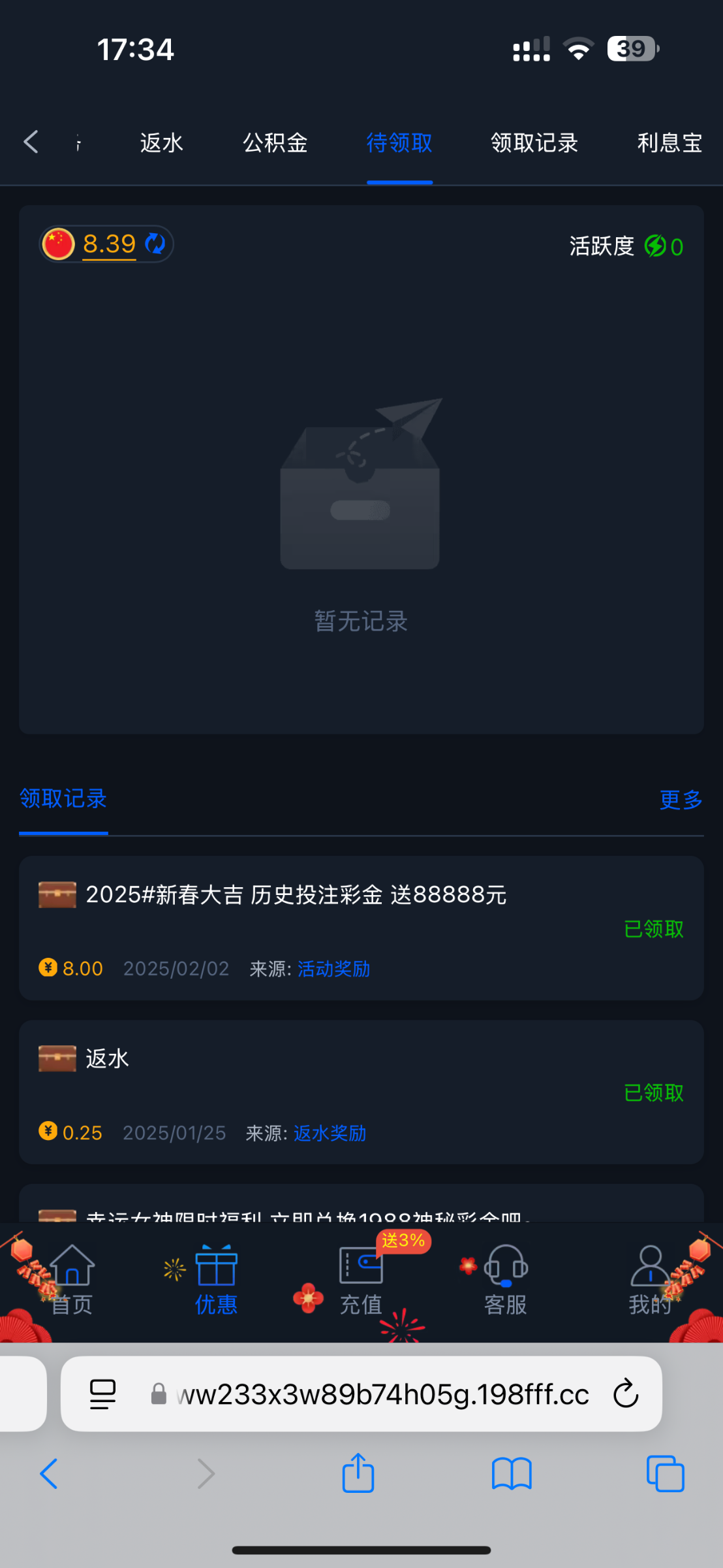 历史投注彩金我没充值过之前领过特邀上号发现有8 应该投注很少都能领8 网址198.cc