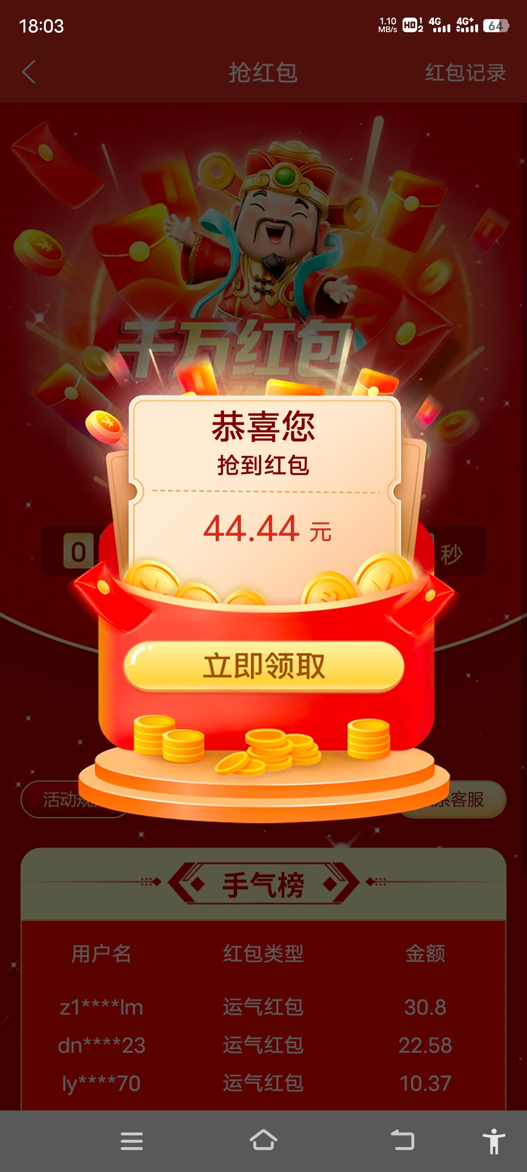 我的380红包是40.44差点 860 011这两天也调了 直接2-5块红包