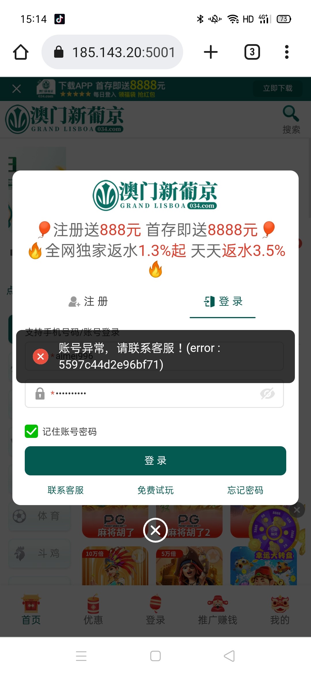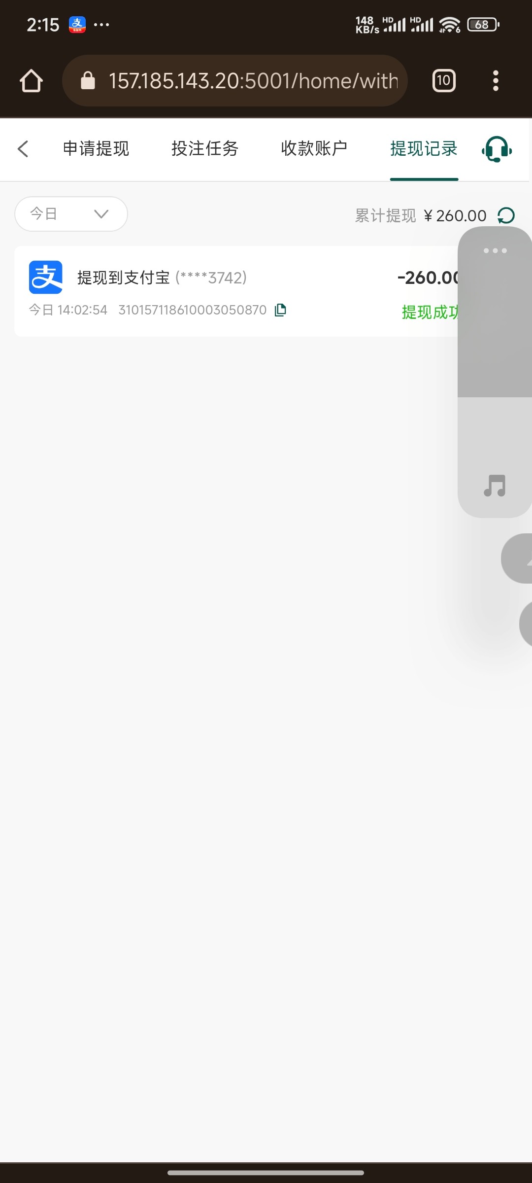 妈的,傻鸟,我看都没看,没想到发过了,今天睡睡不着,随便点这个链接领到了20块钱这个平台,麻将给了100女王给了100,提了190多,其他的内置的no钱包然后再充值进来刷水,提到自己的钱包,好像是没有黑,已经起了110,还有100在出款中