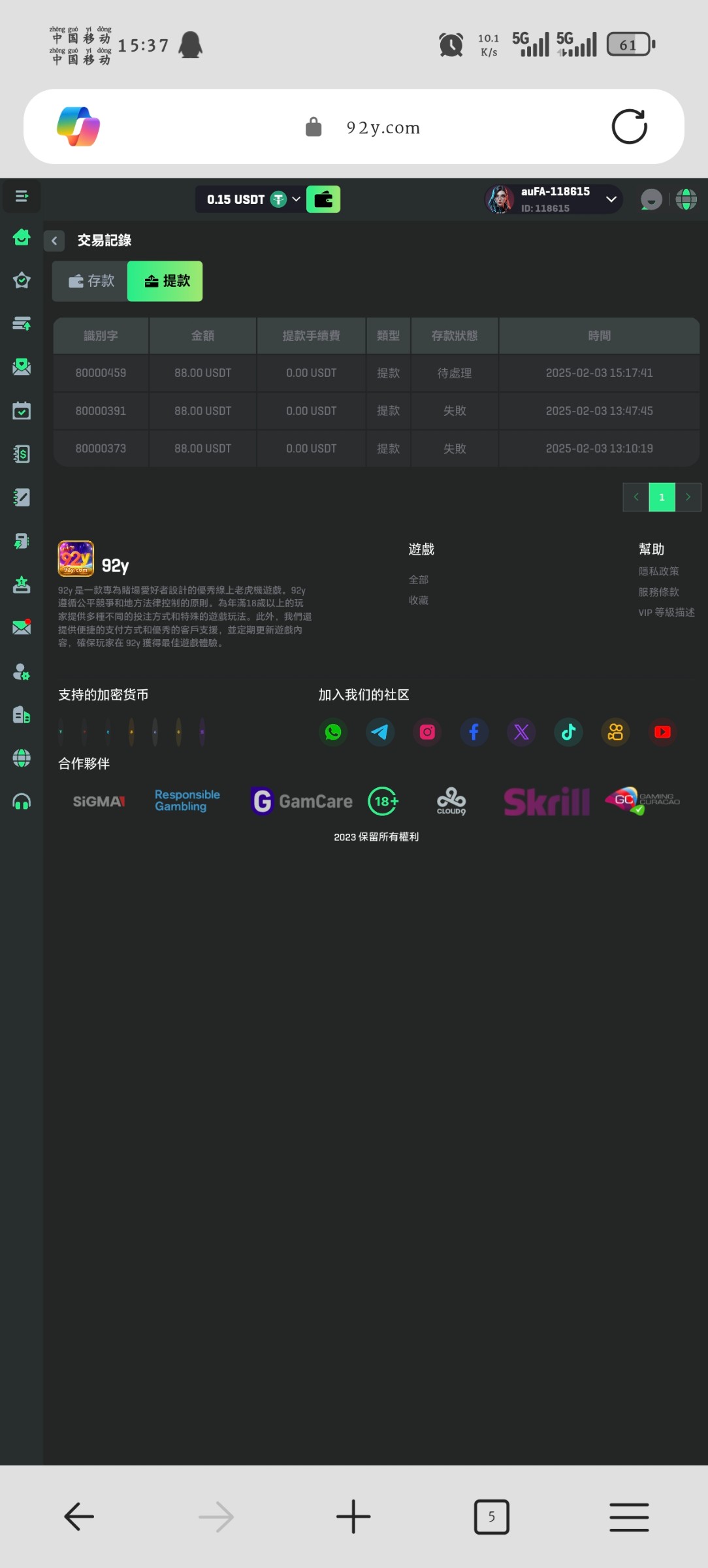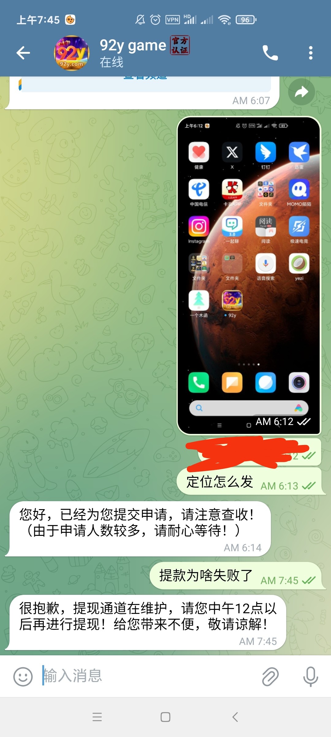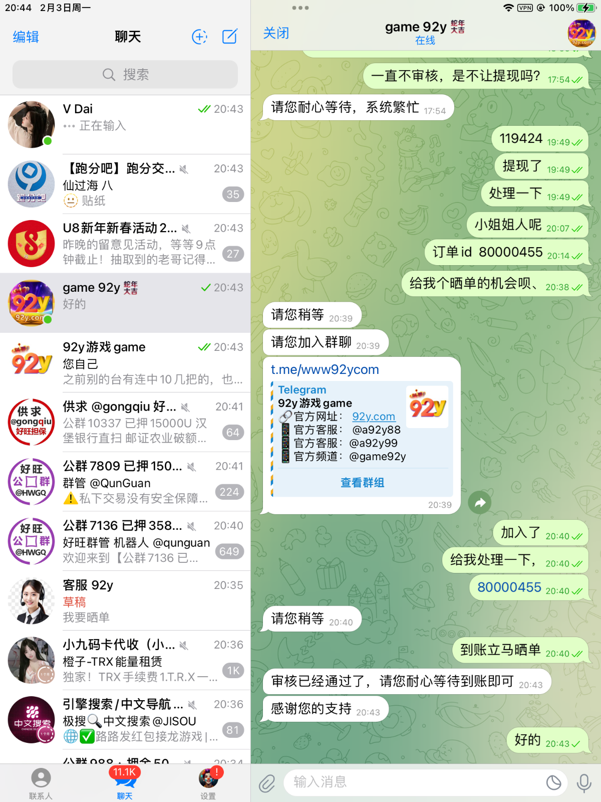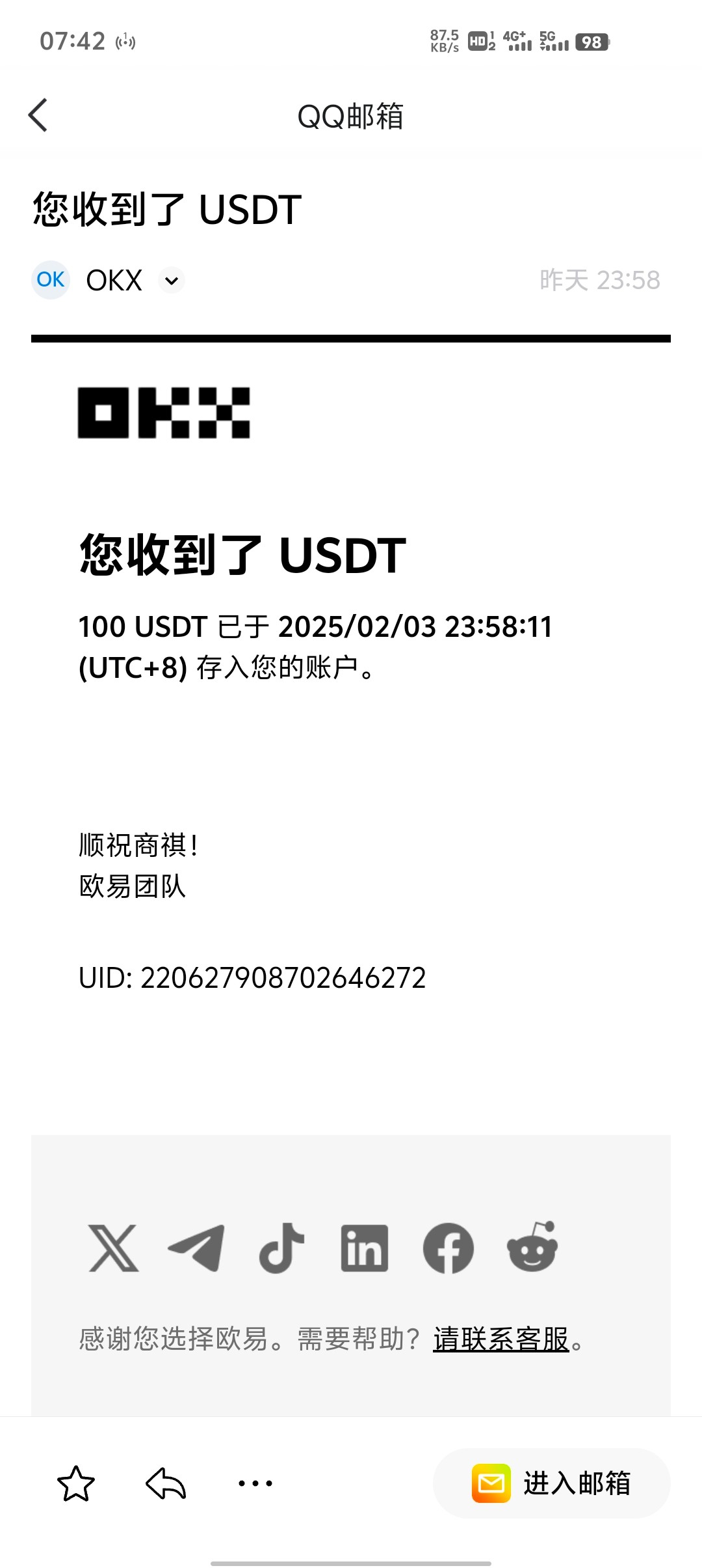 一直给客服发信息,到账了149u