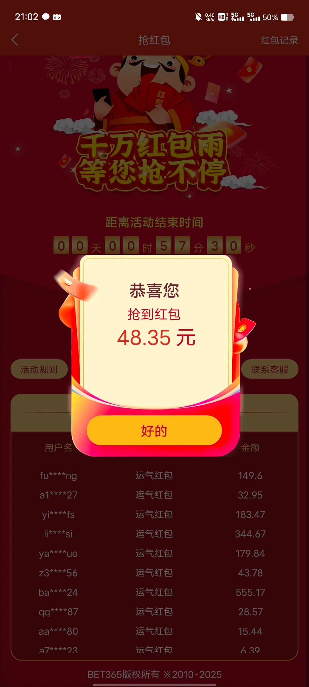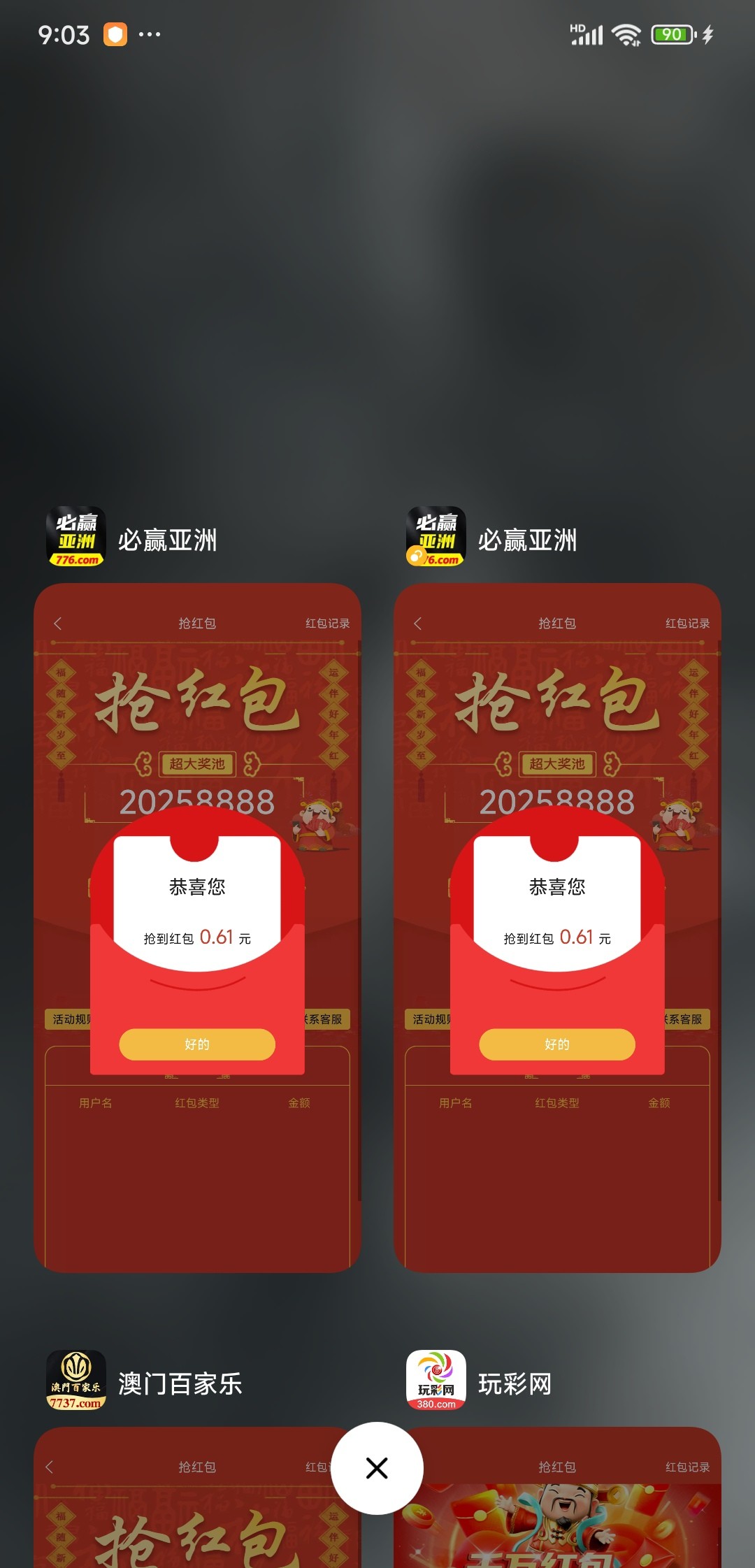 这个网以后都不玩了,太黑了,抢到加赠的红包不给,扯得抢晚上的运气才有效