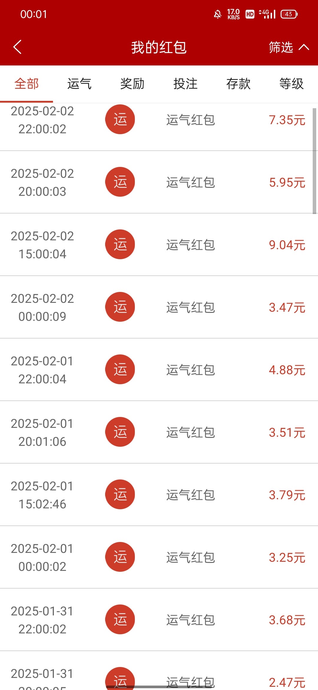 显示别人都几百几千的红包,真他妈的能吹牛逼