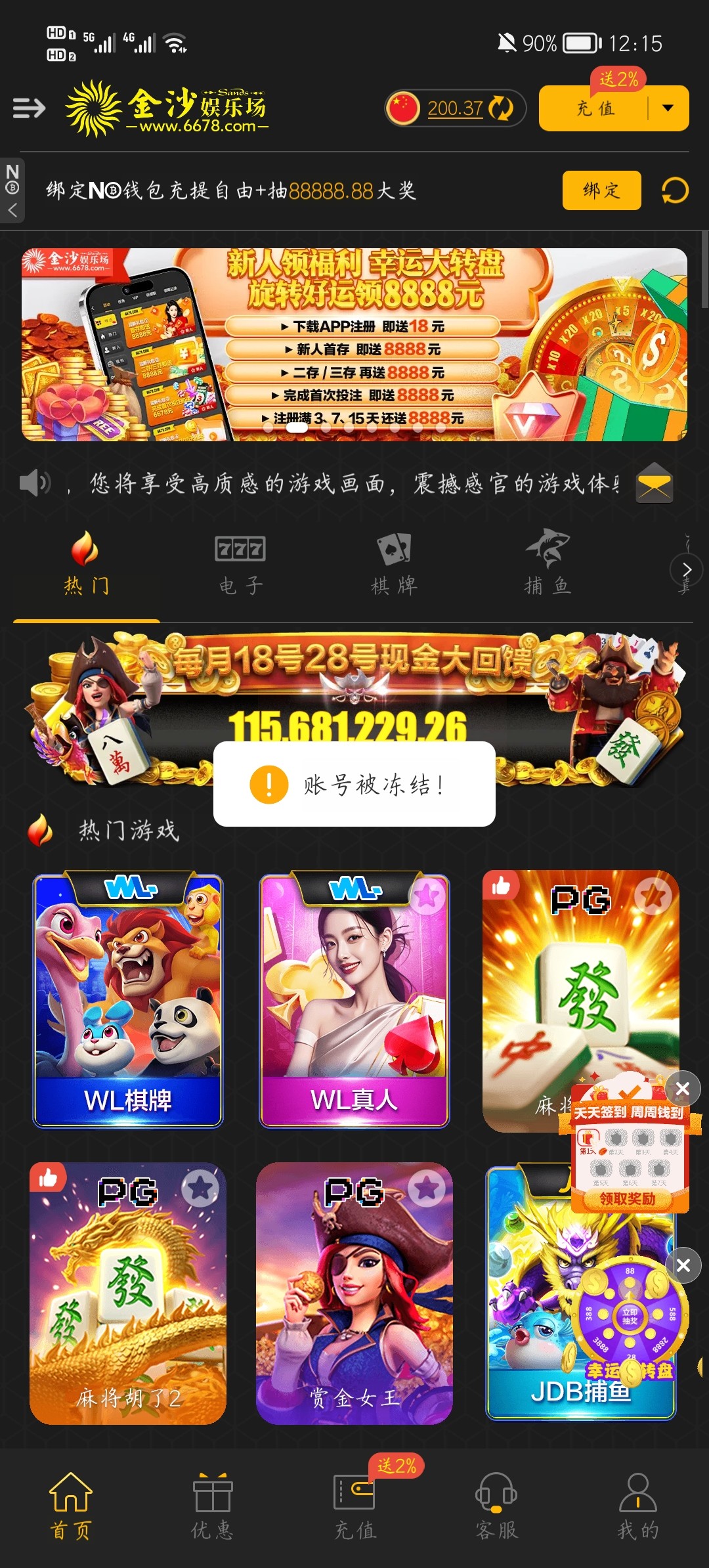 账号冻结,上次有老哥发过了。充值10领18。我打够了。提现冻结