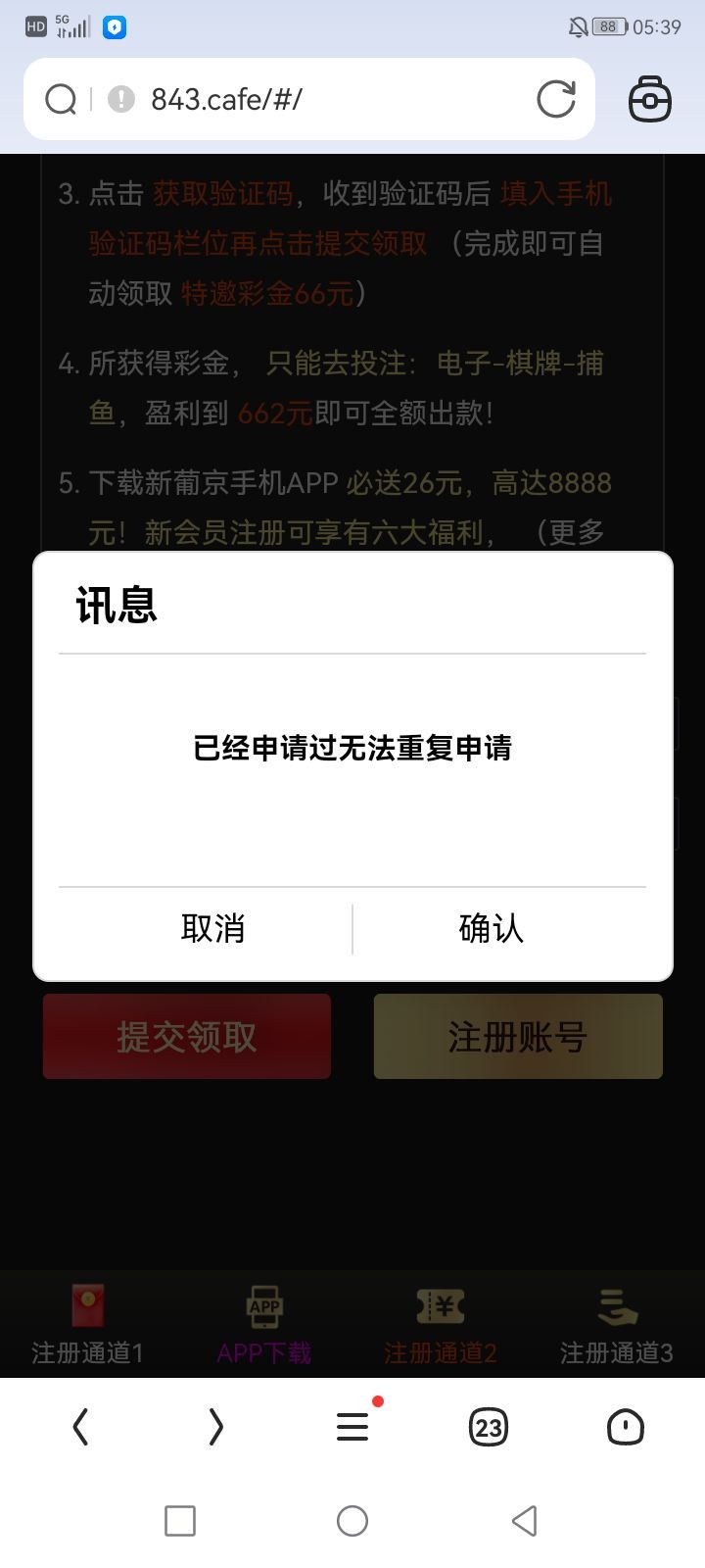 刚刚接到电话领了66,应该是重置了我之前领过好几次,地址http://843.cafe/#/