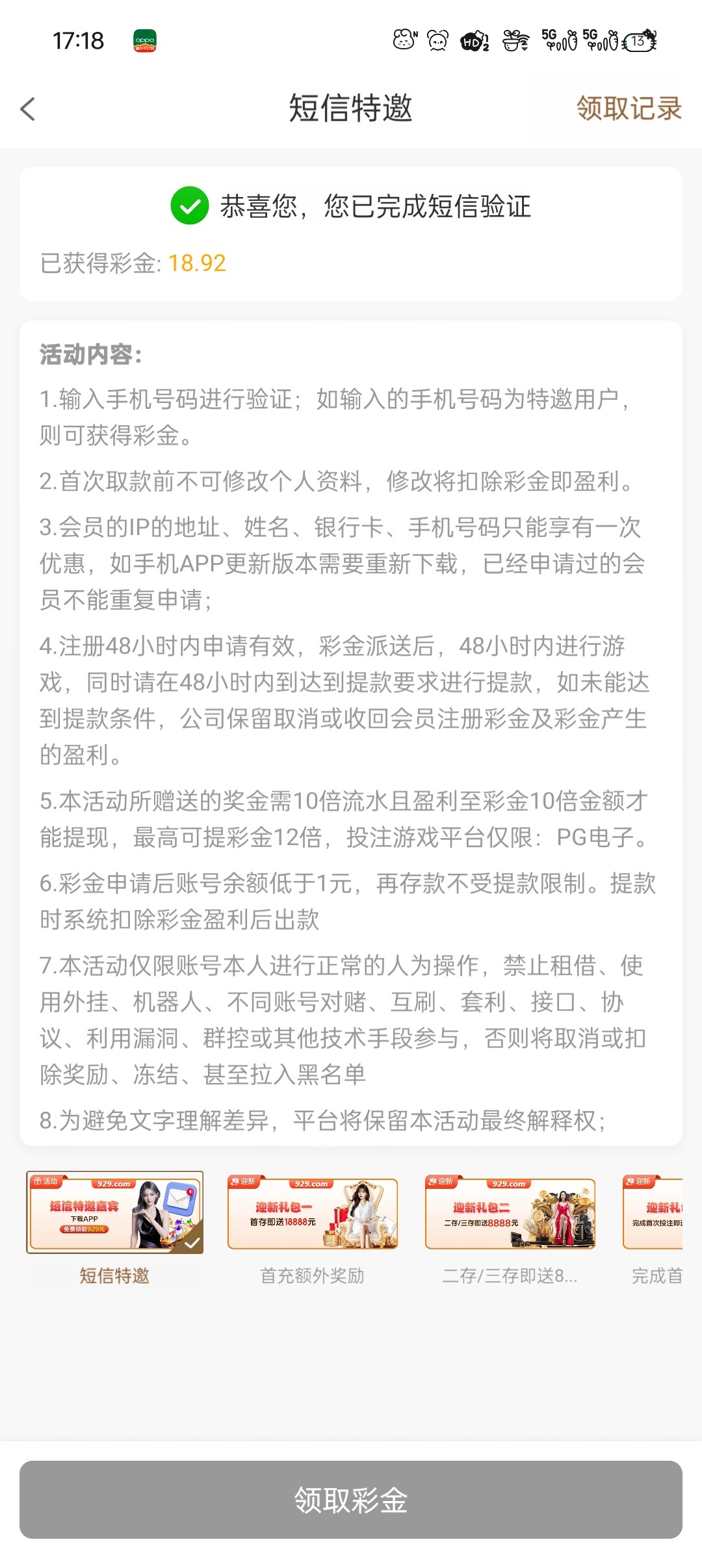 之前不是撸过短信彩金