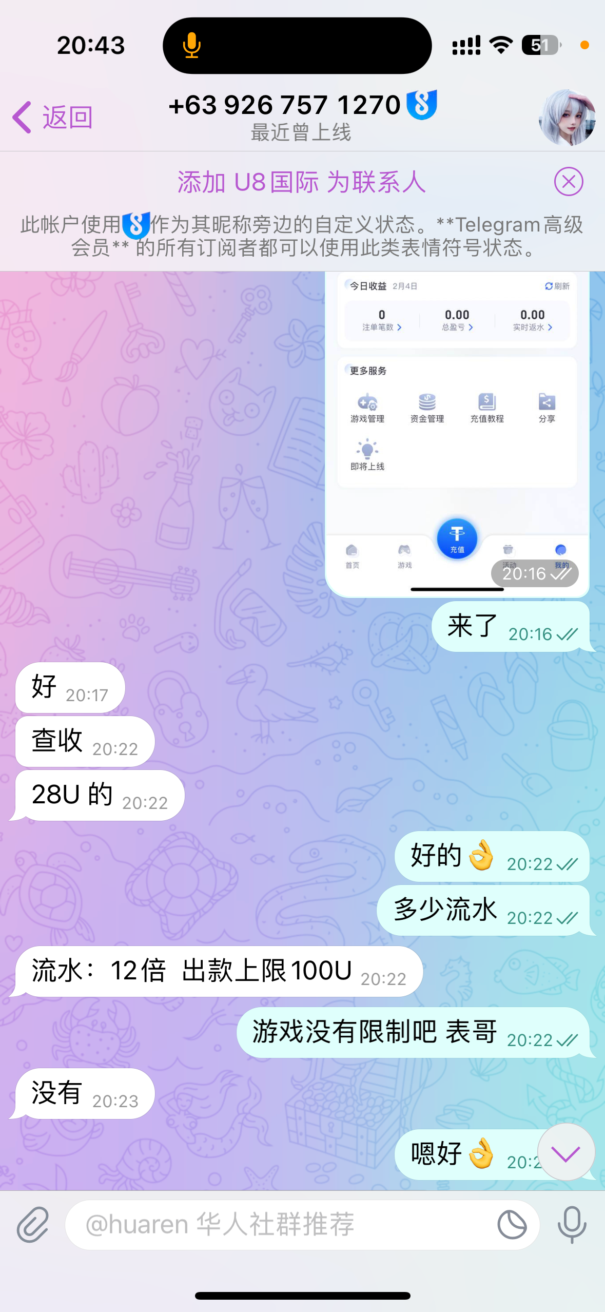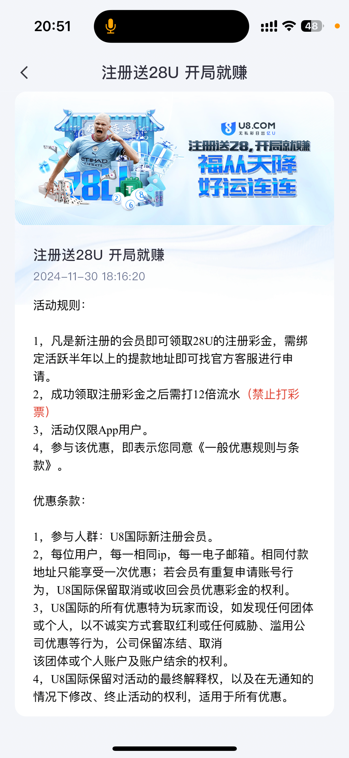 直接问他注册送28u吗。然后他会发链接的注册下载登陆绑定半年以上的地址,发u8账号和下载APP图 u地址给他几分钟就能到