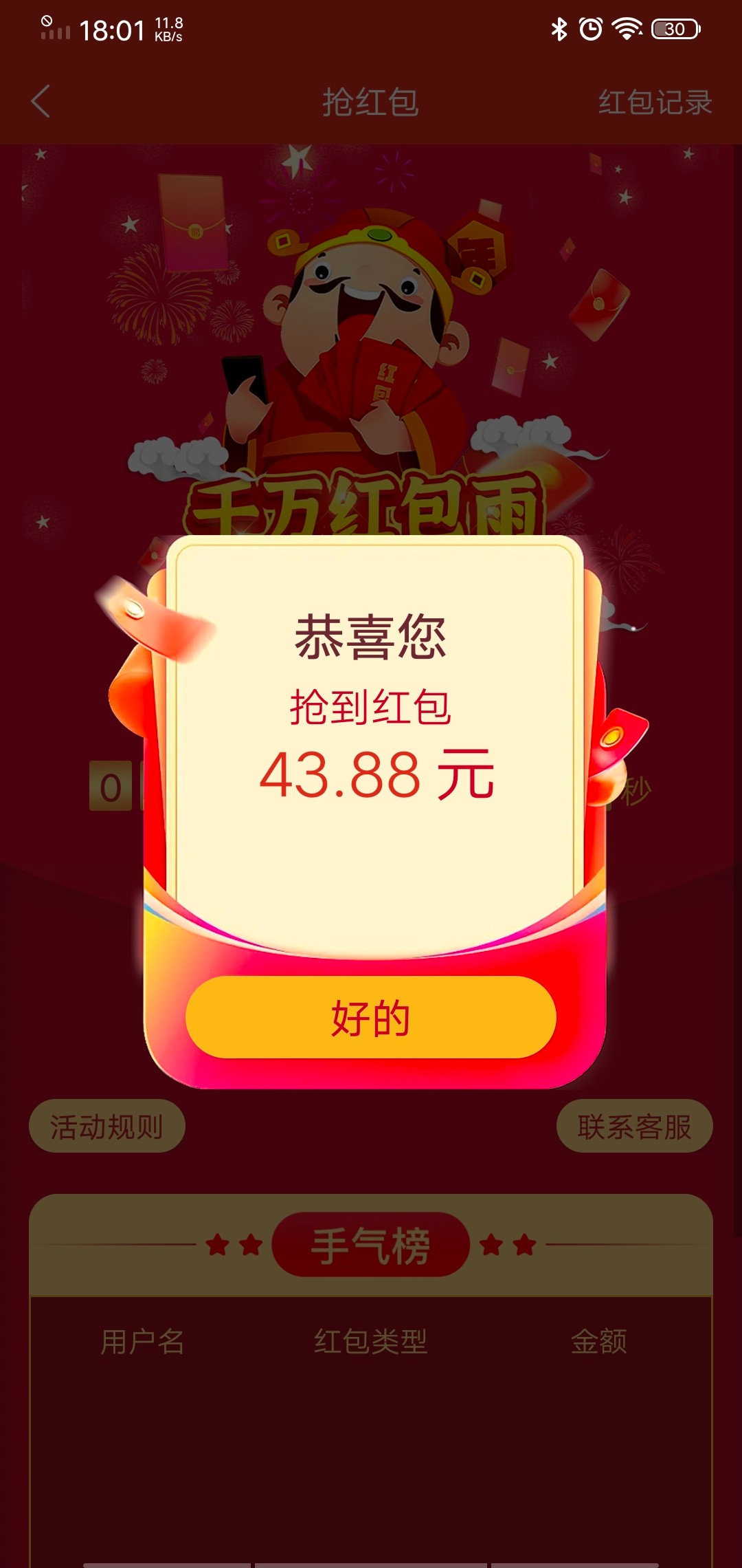 充值过几块钱今天去抢红包直接显示不符合