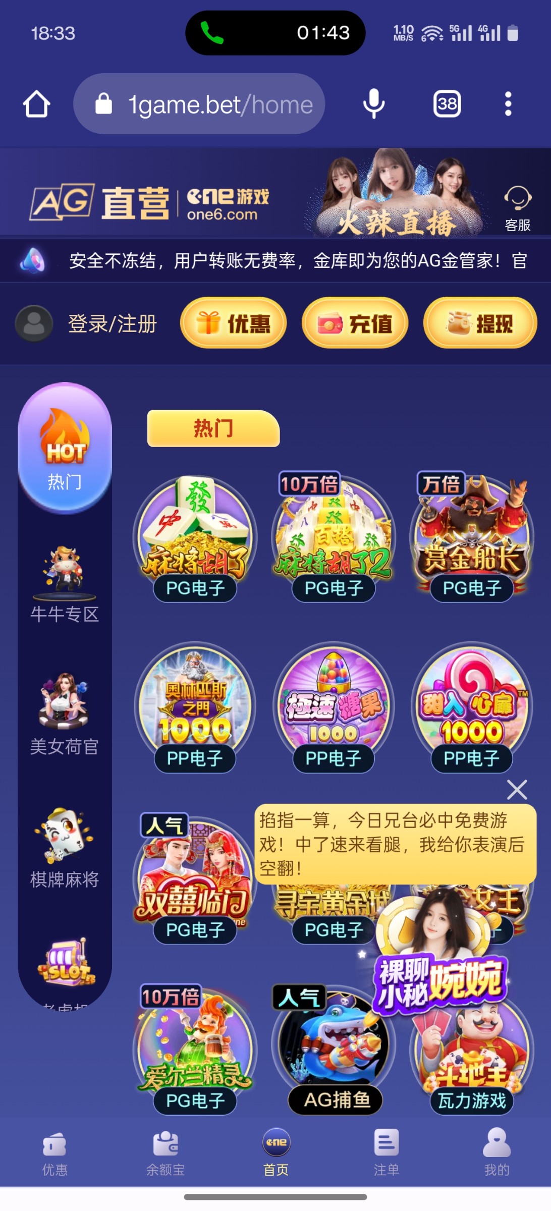 这个台子不行 马勒戈壁上次专员打电话叫我充150送150 钱充完让我找在线客服就可以领取 我找在线客服又给我推到专员 第二天普通客服打电话跟我说不送了 活动传达有误 专员打电话那天下午就取消活动了只有300送300 刚好那会儿我就在睡觉被吵醒了一下子火上来我说这150你们要是不给我送我把你们所有AG直营台代收款的人点掉 结果好几天之后上去里面有150