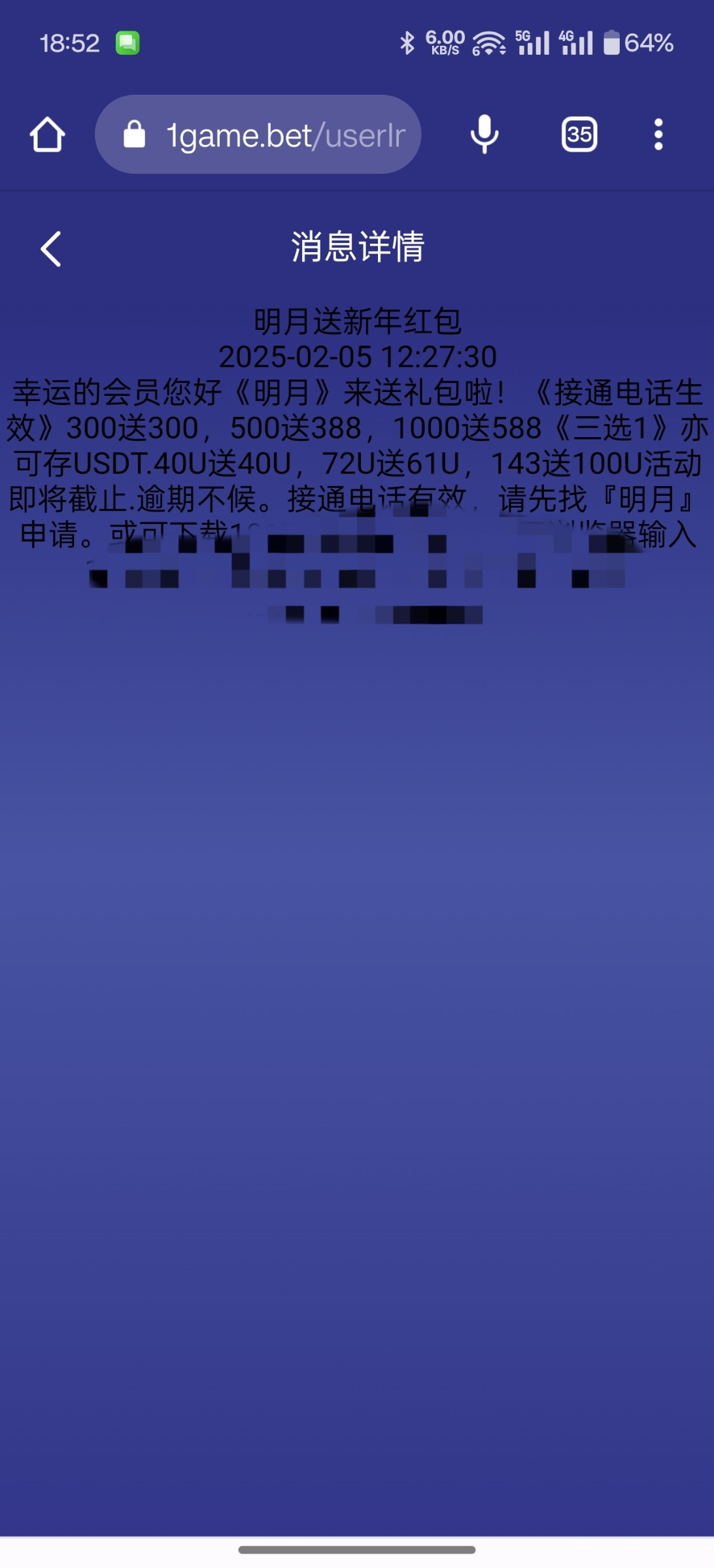 今天突然接到一个电话上来就喊我黄伟力(我不叫这个名字),上次提款后怎么不来游戏了等等,问题是我根本不知道这个台,老哥真是神通广大,这种需要接码的白嫖怎么做到的,还有单纯U存U取这个活动可以参加吗?