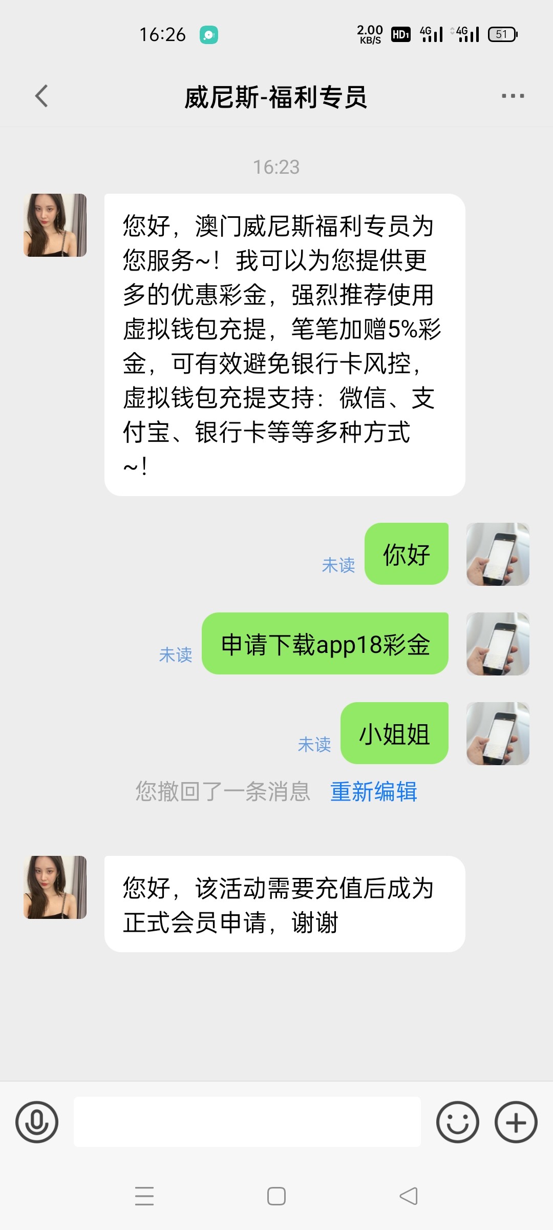 注册下载APP找客服就送,我两个手机都送了还是注意不要多账号,白嫖就行了切勿充值! ! !345.vip
