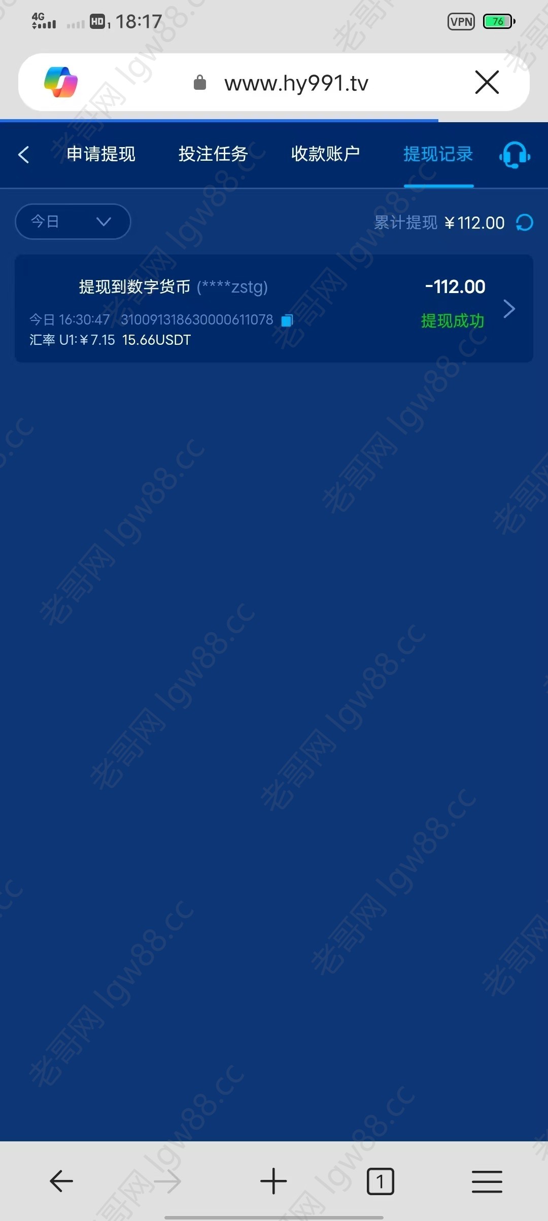 我已经提款了,限红是168,没有流水限制,除开体育其他都可以