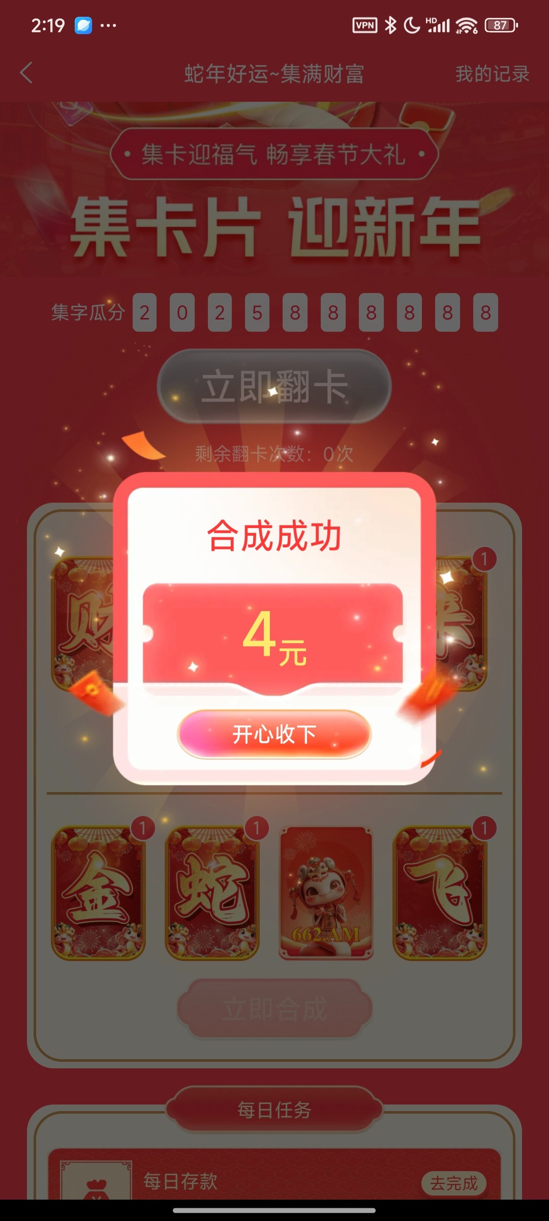 集齐了4块钱,笑了