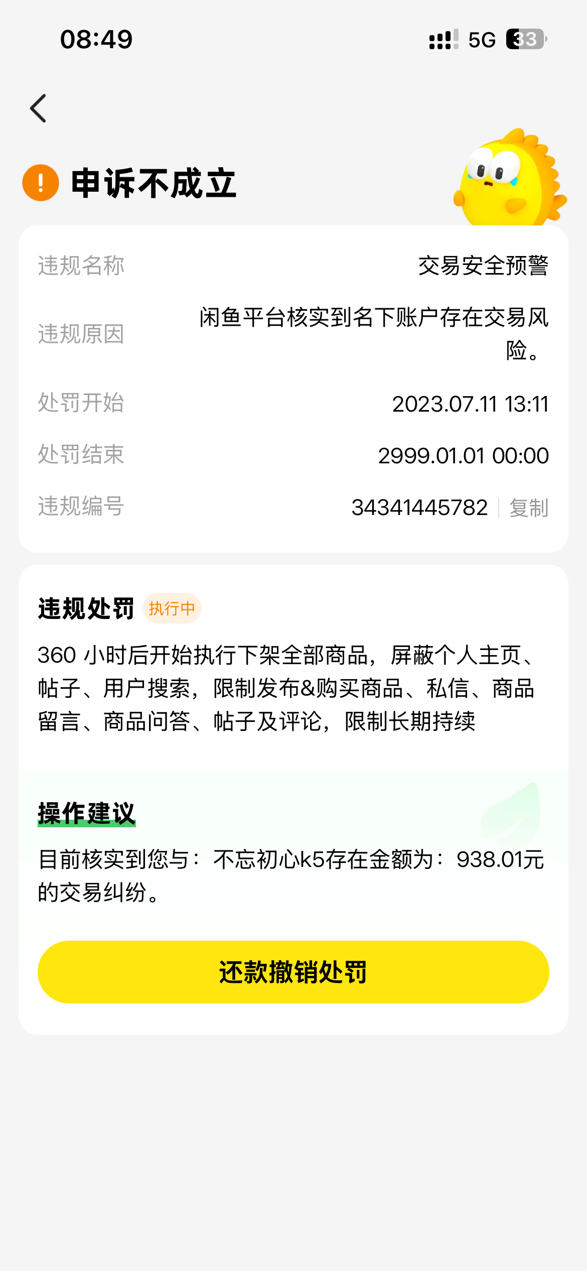 我在飞机上出租 租完登上显示有9000多的交易纠纷 让我还款撤销处罚 一分没还这都两年了屁事没有 支付宝也能正常用
