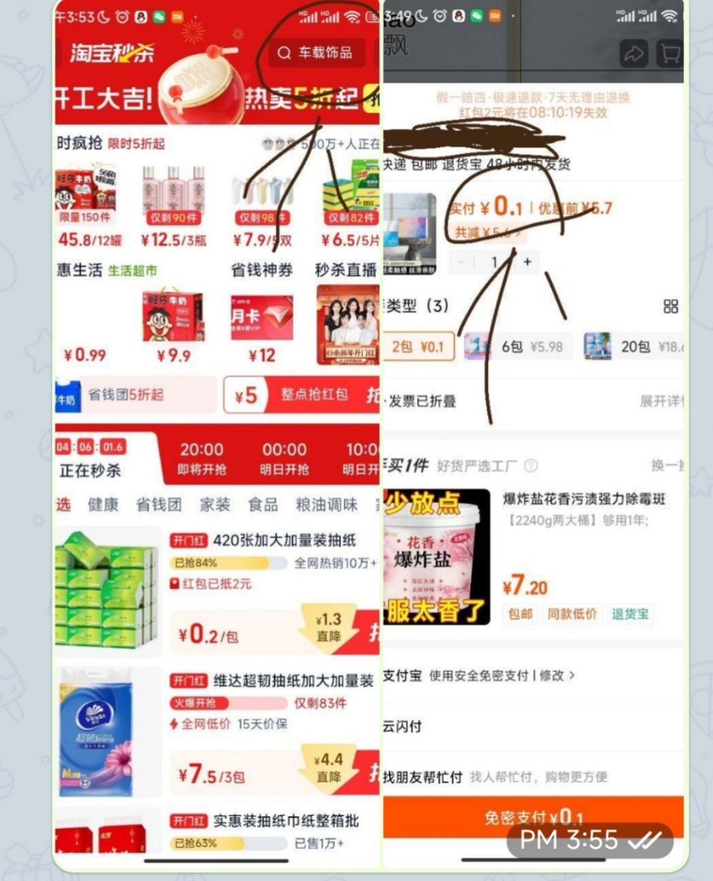 第3步。在淘宝秒杀里面搜索下面这句话
