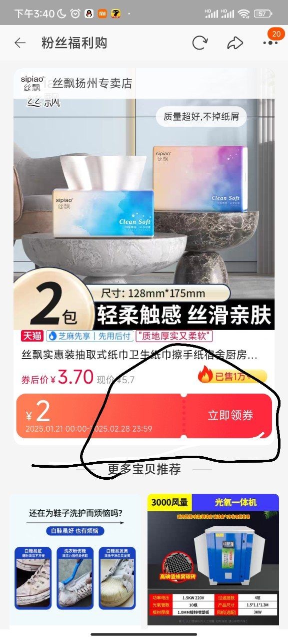 然后自己在里面买就行了,两包大纸巾看图操作