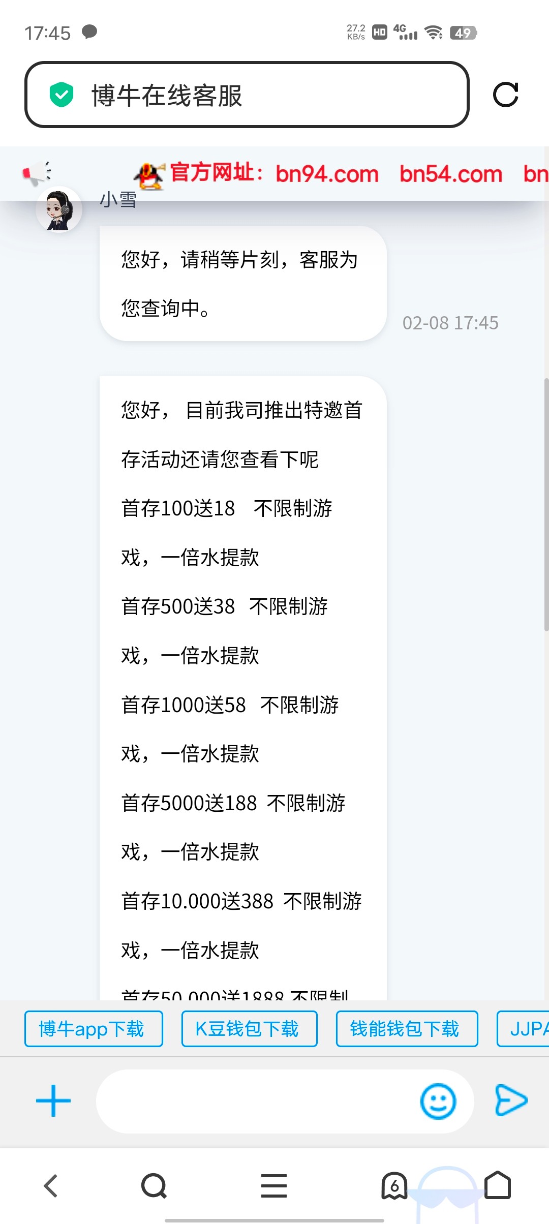 打电话来的送28老哥们有漏接电话的可以去试试找客服碰瓷 我本来打到100了没提挂逼了网址:bn.vip