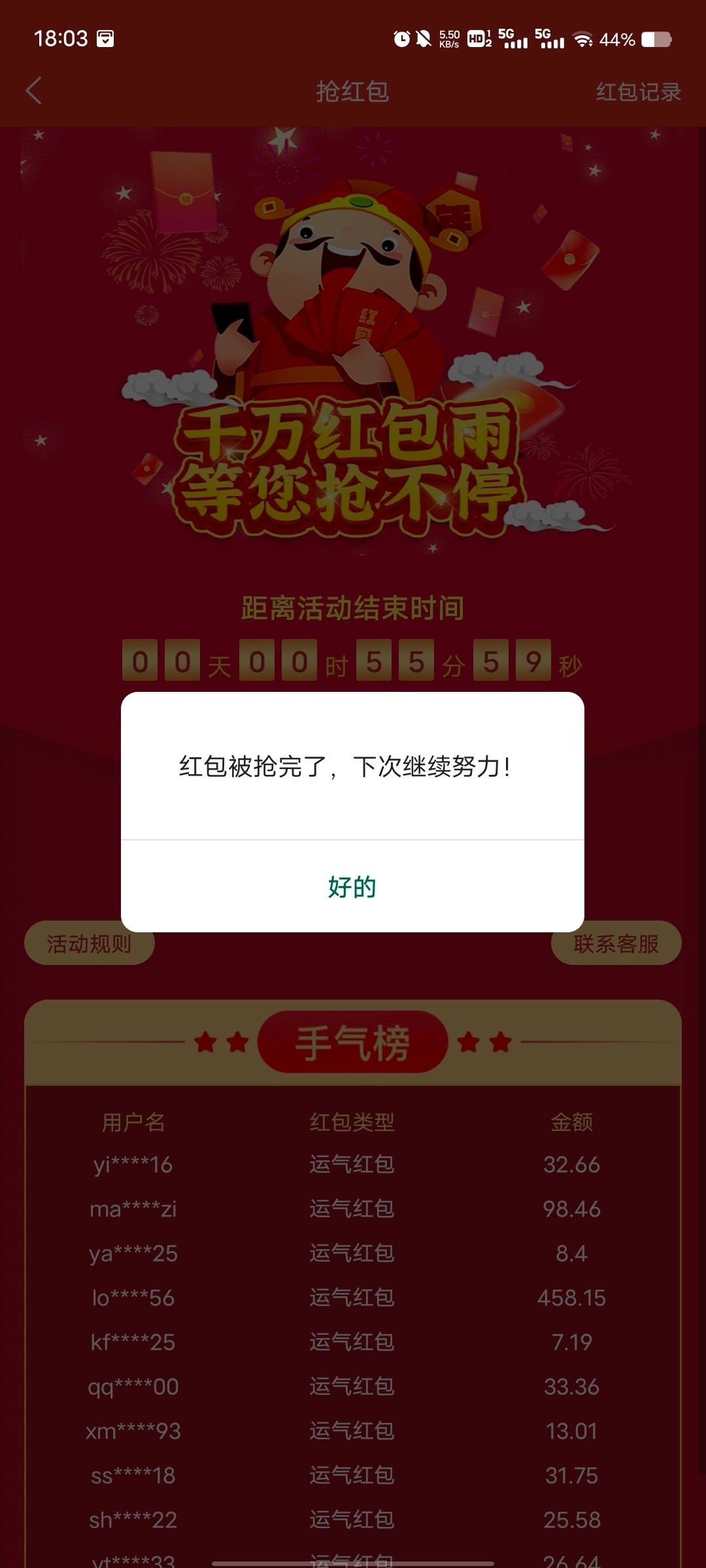 一群土匪了,刚到时间,又卡不进去,红包也弹不出来了,进去了,红包就被抢完了...
