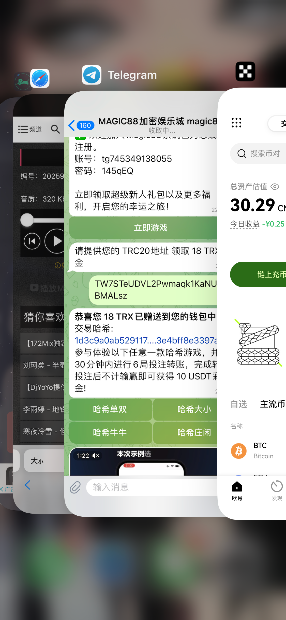 你听远山丶 ▶ 飞鹤 是的 我秒到了 发了个trc20地址 给了18trx 4.2几的u 30块钱吧 11月前