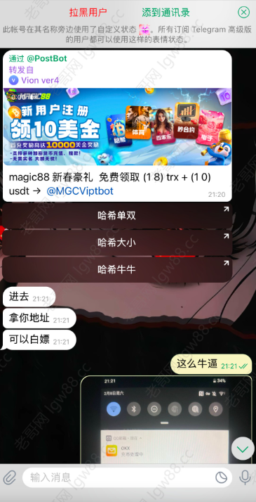 飞机启动这个机器人发trc20地址秒18trx,好久没发白嫖了,老哥们有什么不对的说一下