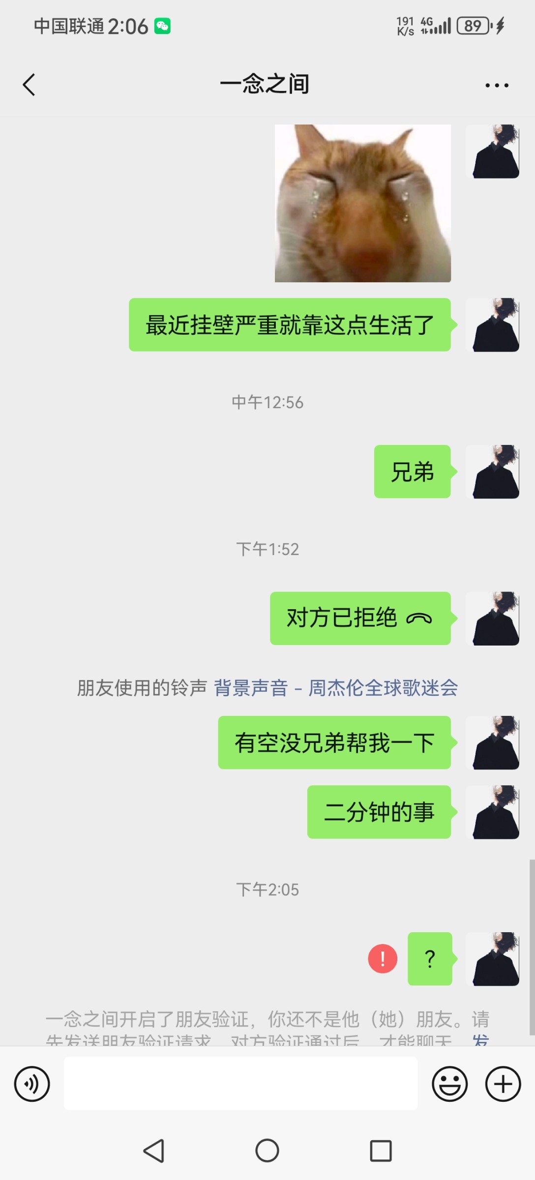 老子也是一样 要对方核实 也把我删了