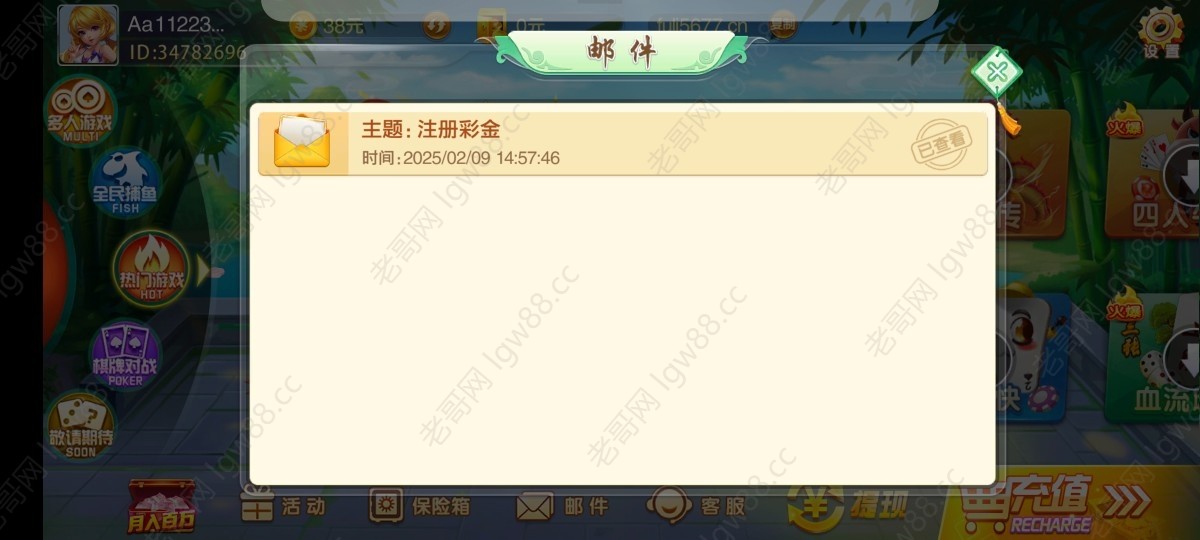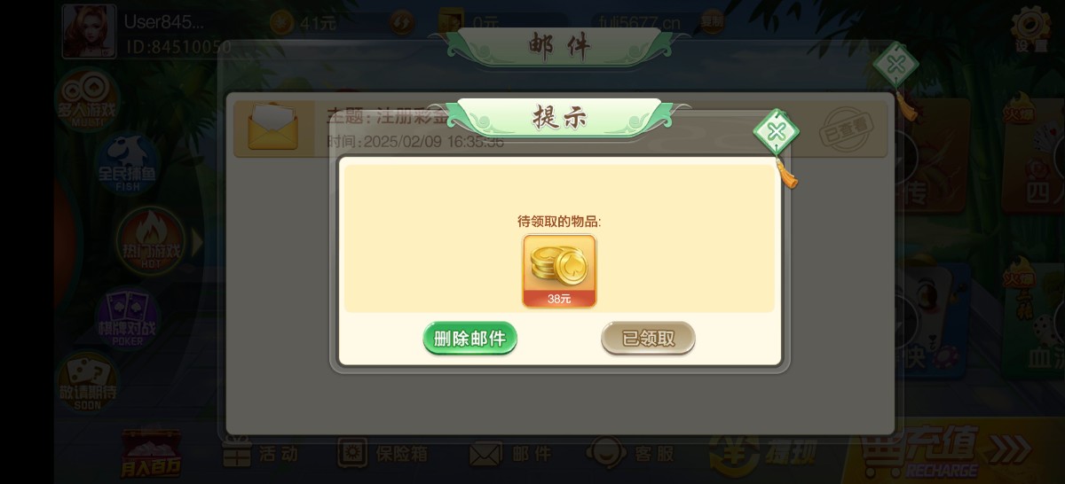 领了38,找了半天没两毛麻将,其他都不会玩,随便玩玩,半个小时挂壁,最多上50。。。要300提,赌神上吧