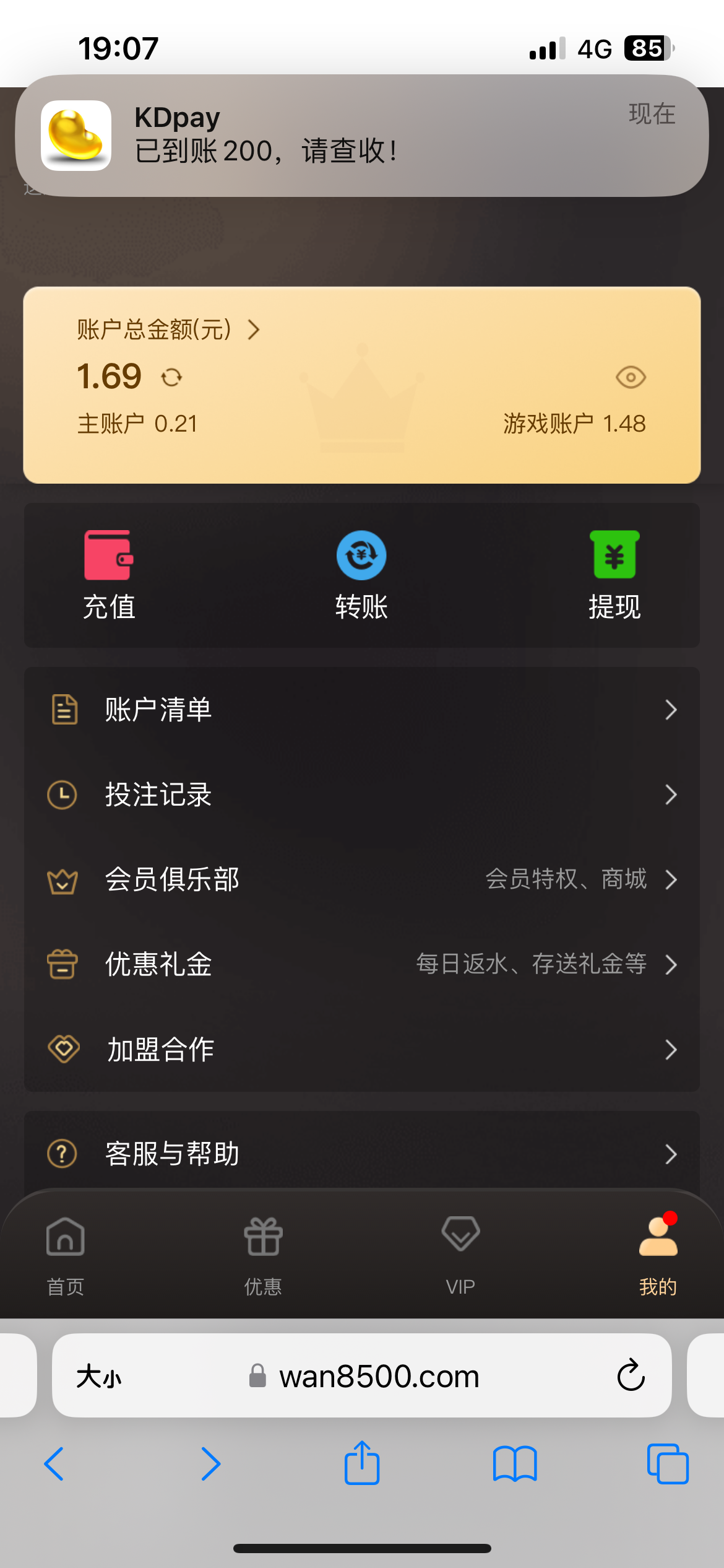 没有 早几天充了200