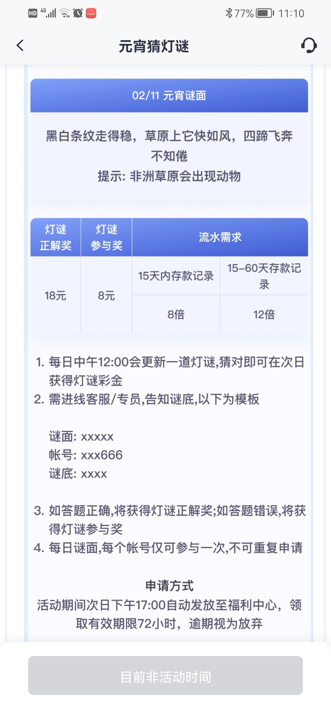 6t.com元宵节猜灯谜活动近60天有存款记录添加kk聊专员11号到15号每日可以猜一次灯谜中了有18彩金不中有8彩金