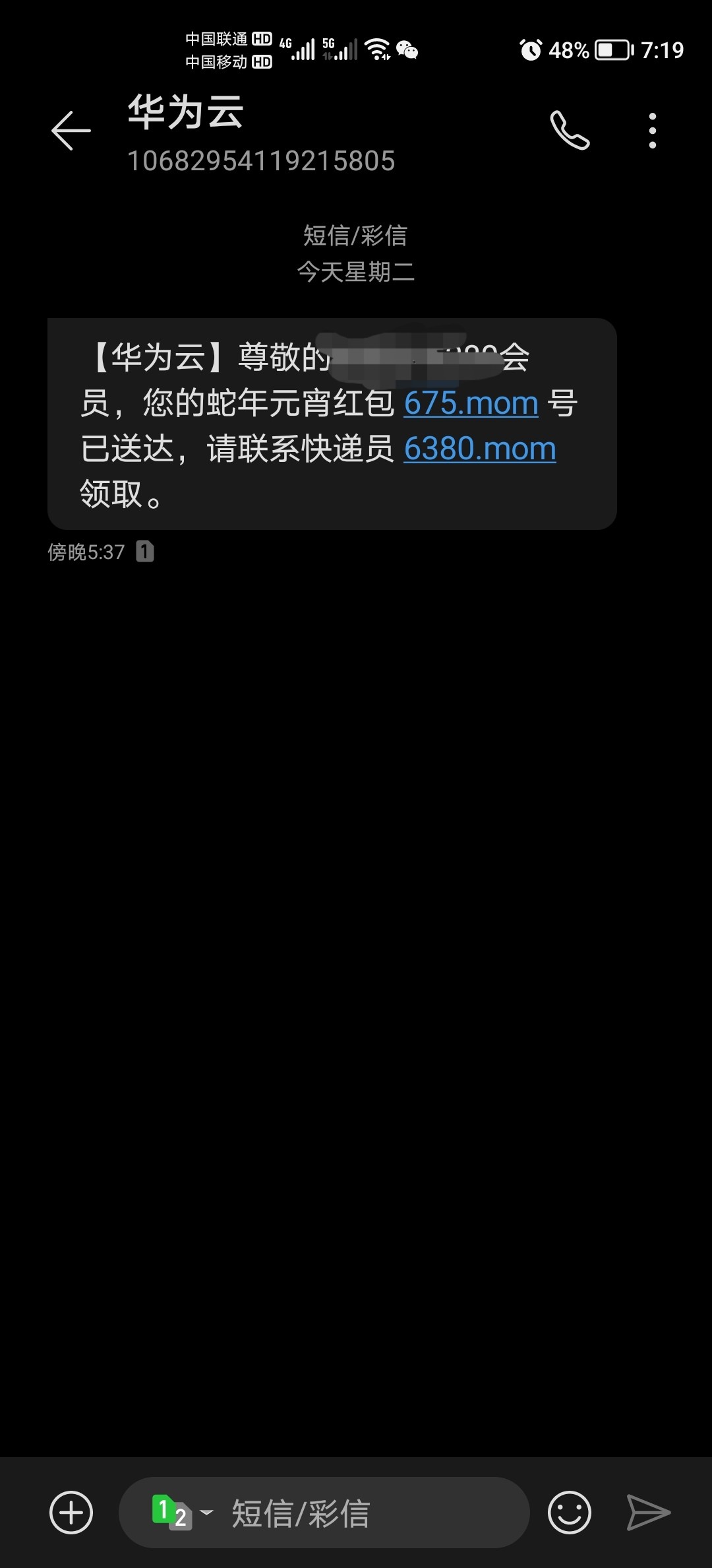 我也收到了,这个短信送吗