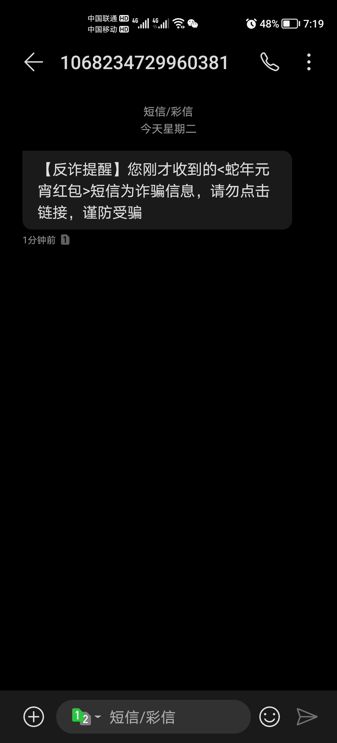 现在反诈这么夸张了吗,短信内容也能监测到