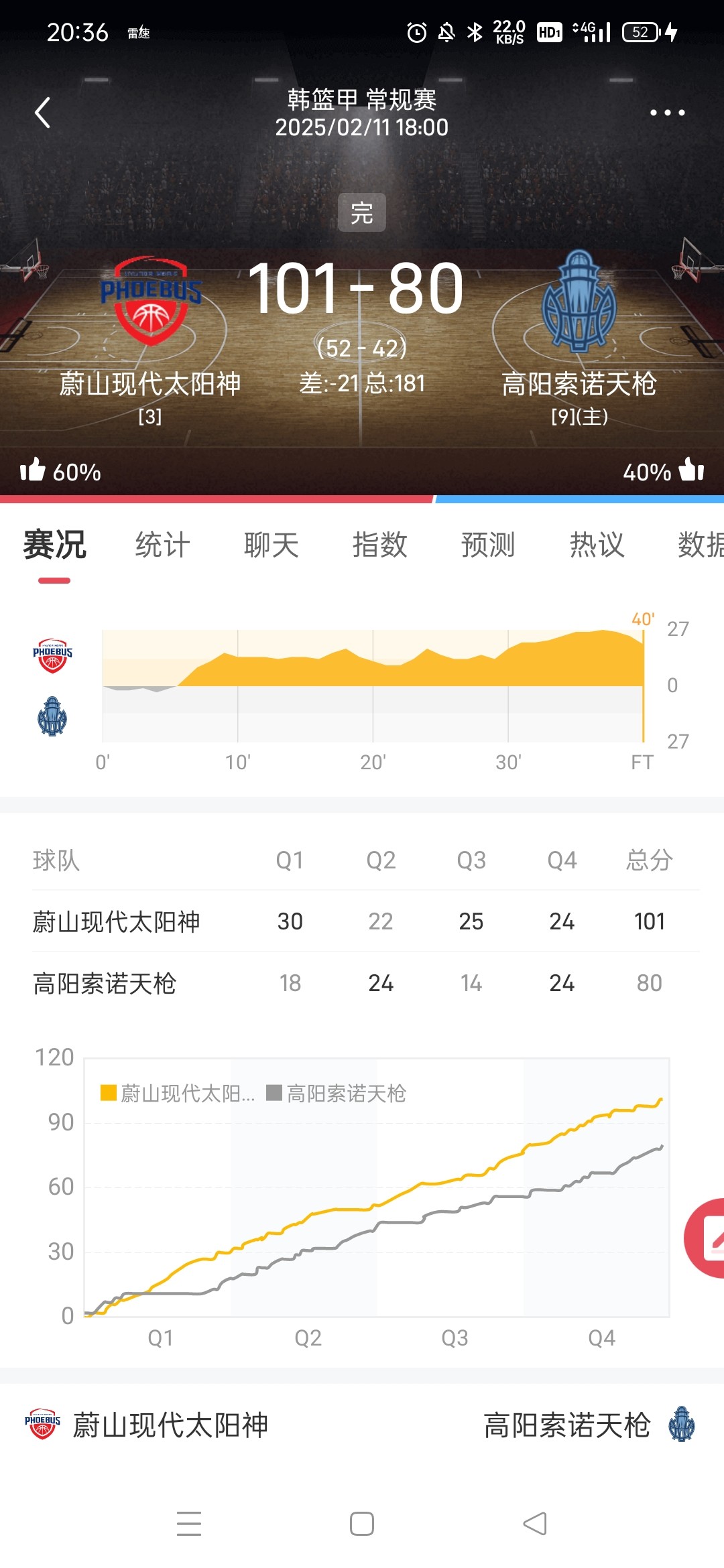 今天突发奇想想买个单节最高分的节,于是买了这场。四节分数分别是48/46/39/48。本人买的第一节最大,怎么会输呢?