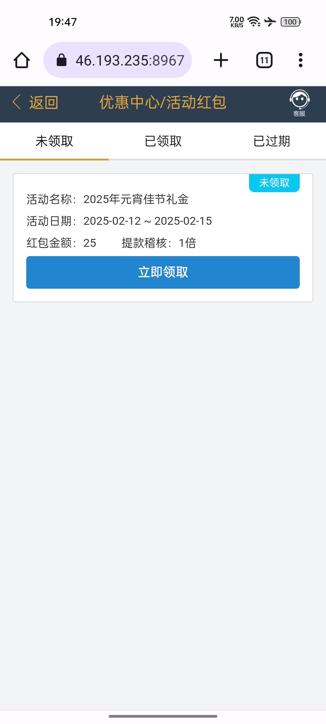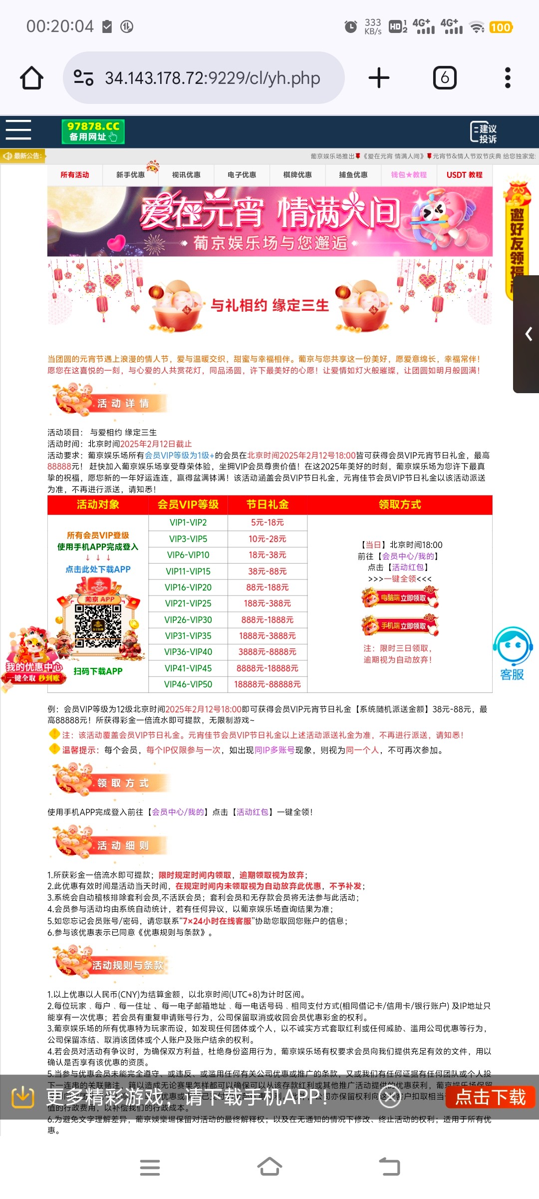 2月12号18点可以领取元宵vip礼金