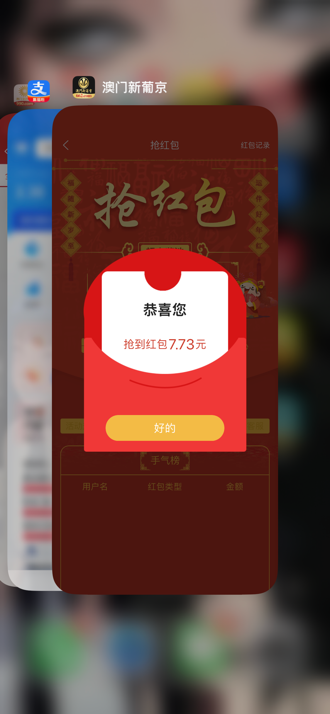 773已经废了。就过年那两天红包抢过几十的 从10号开始我所有的红包全是1-3块钱 恶心的要死