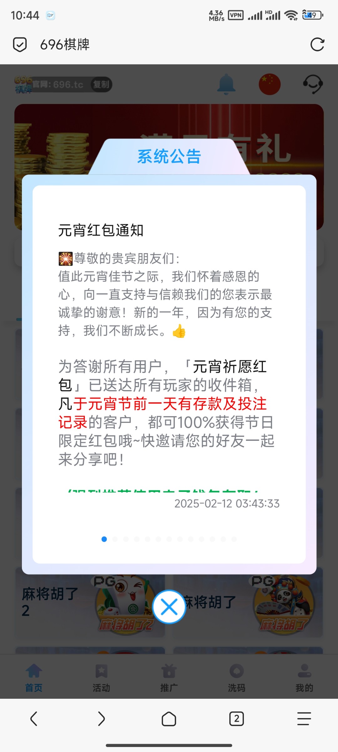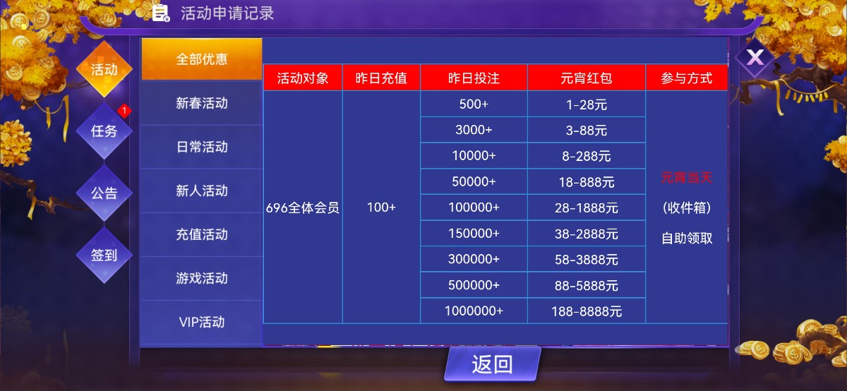 元宵前一天有过存款记录的登陆去邮箱领取,网址 696.tc