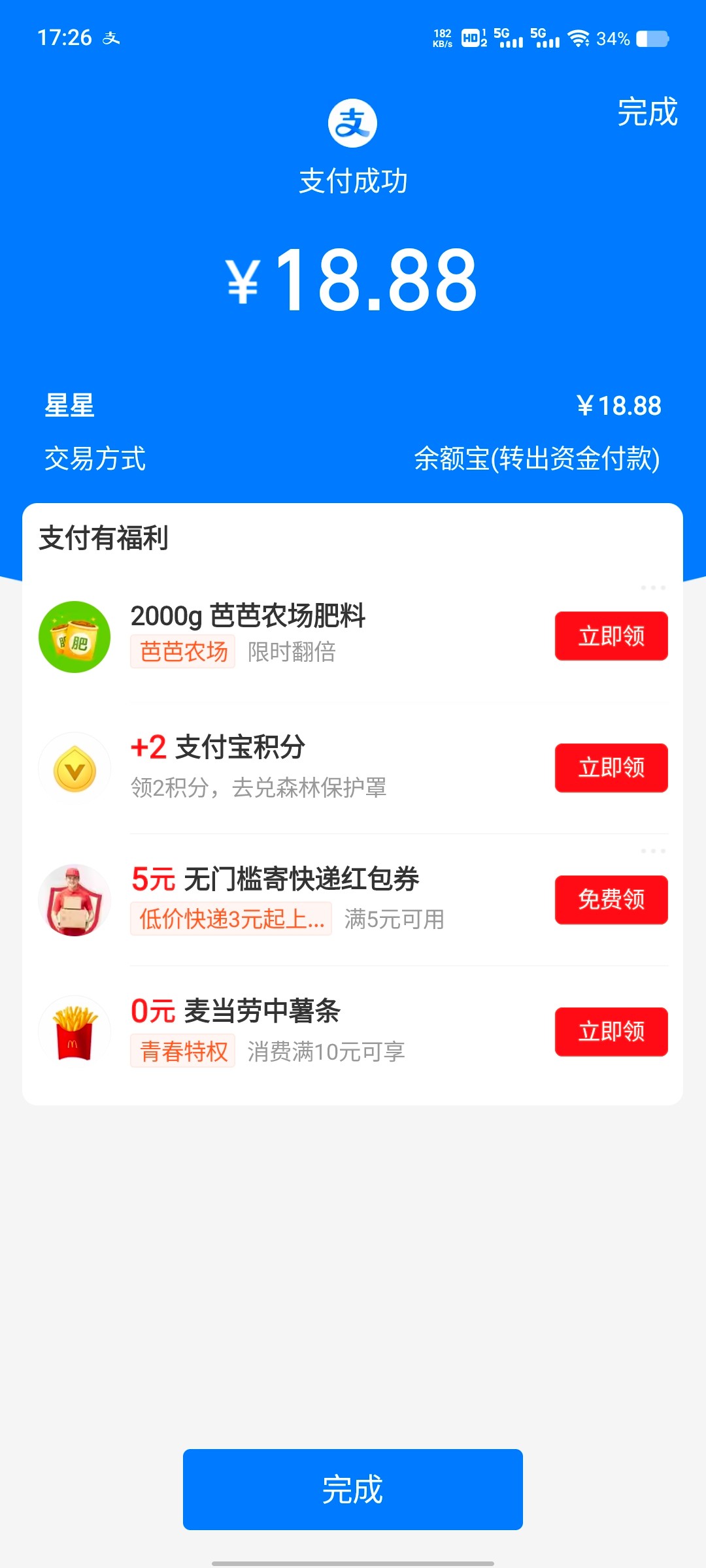 感谢领取5块多