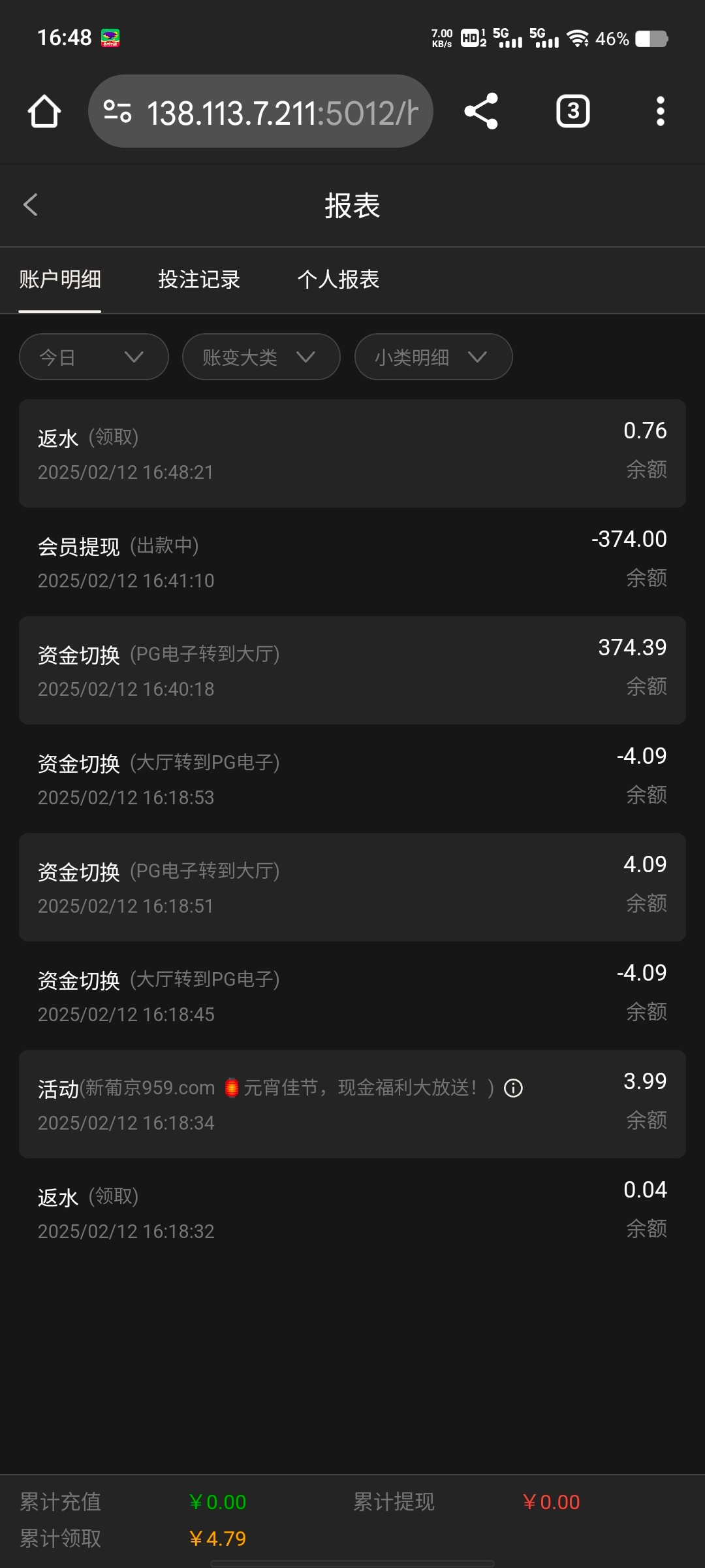 出款情况:自测(禁止充值)