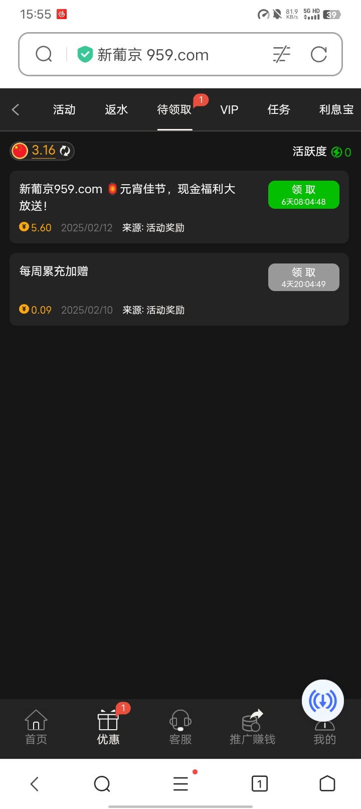 有号的老哥登录上去看看 领到反馈一下 地址 959.com