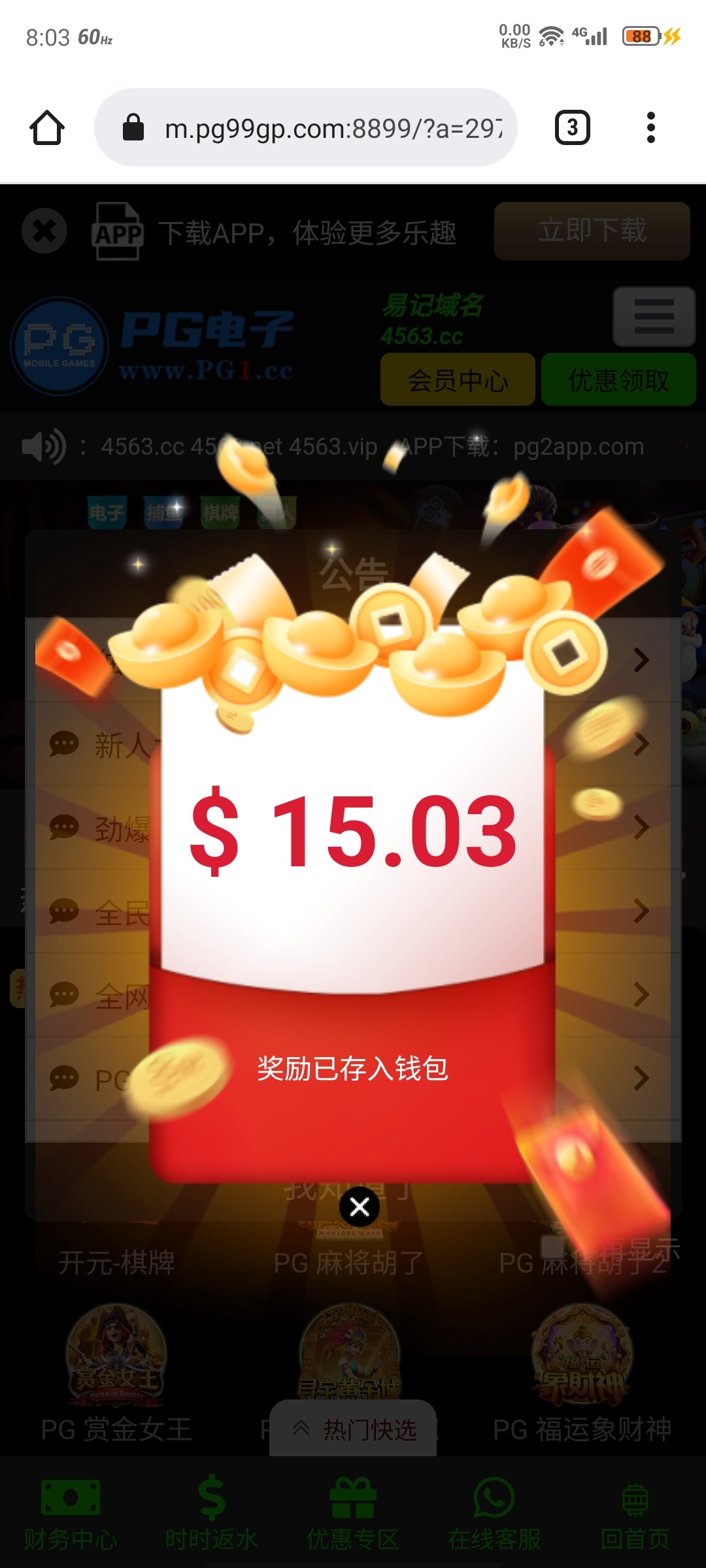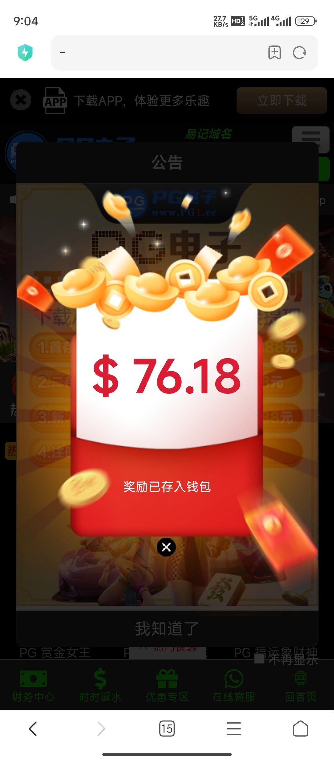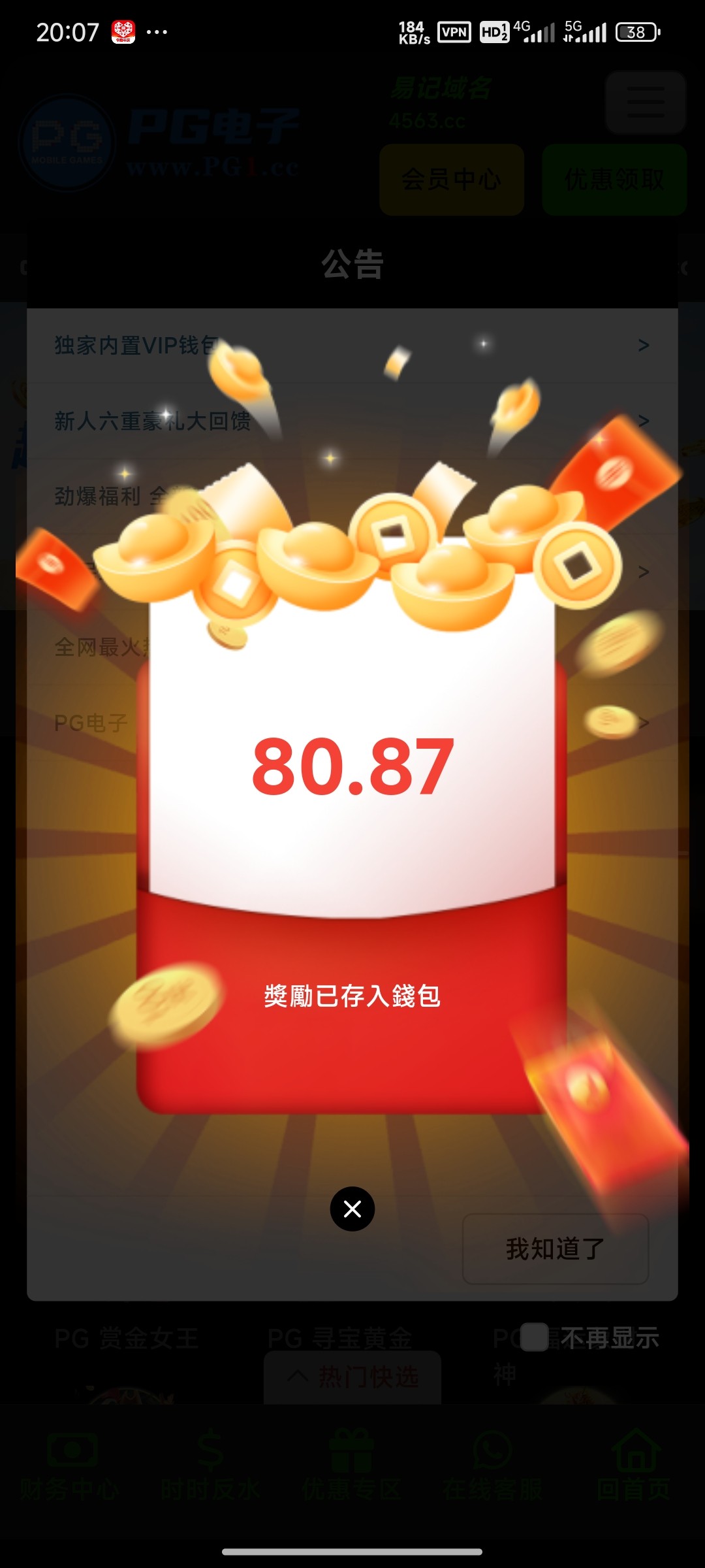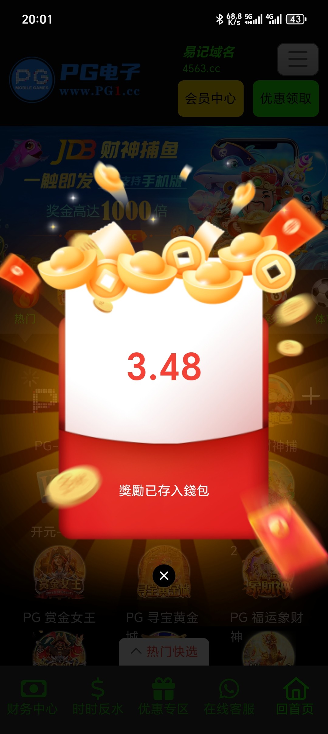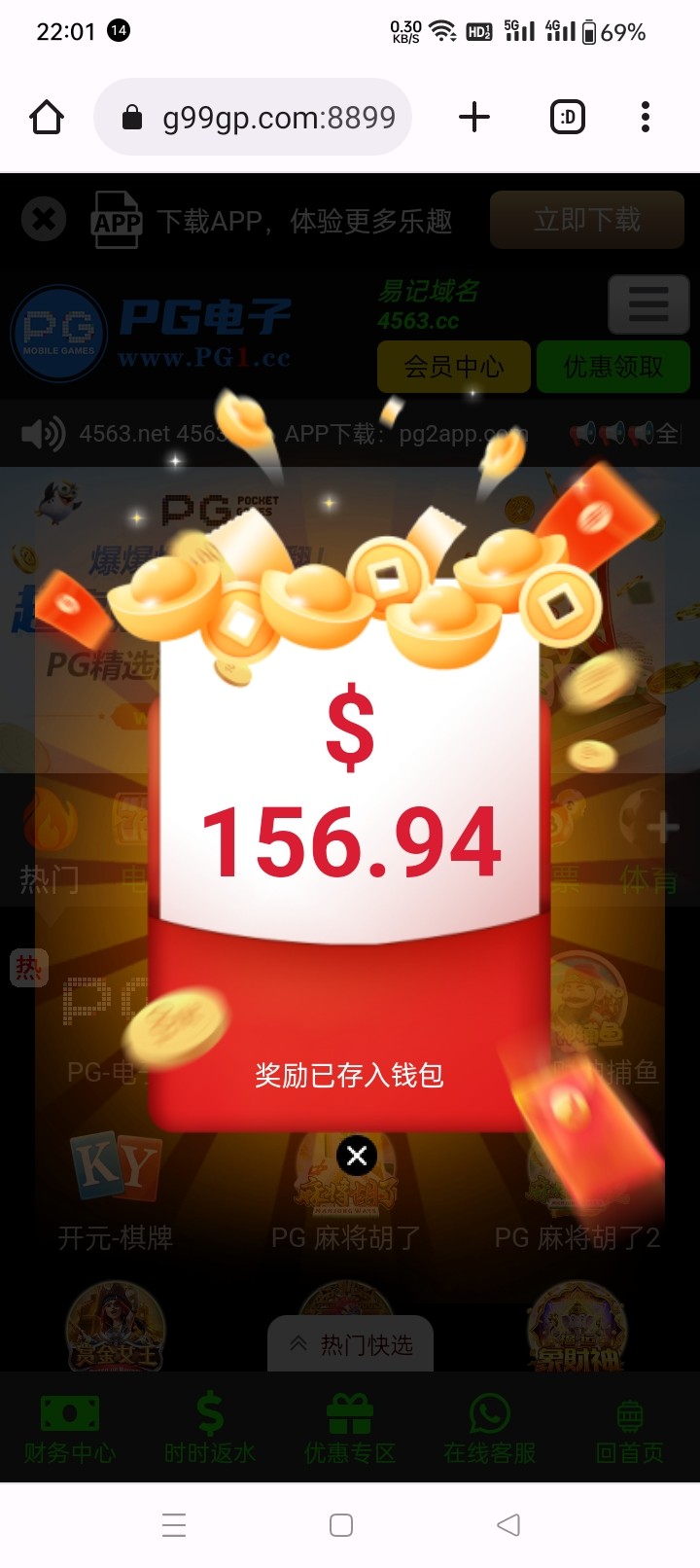 今天晚上有红包 有号的去抢 不知道金额大不大 刚接到电话 pg1.cc
