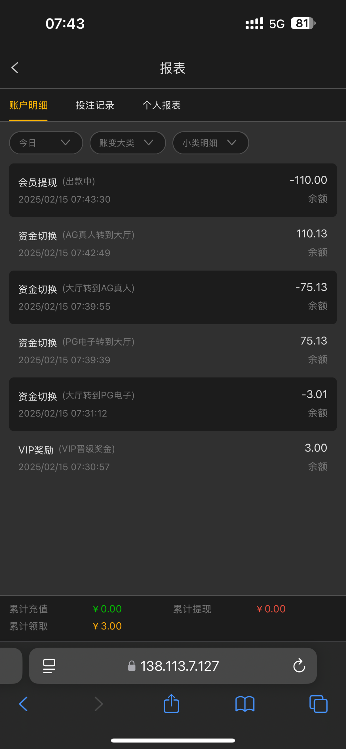 出款情况:自测(禁止充值)