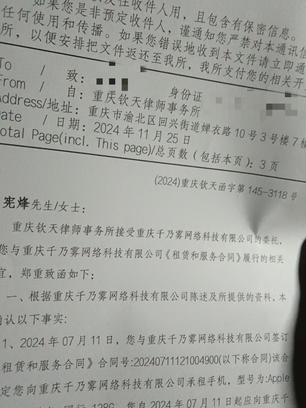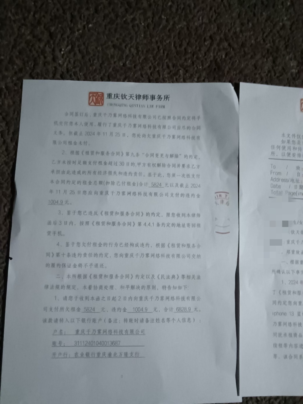 我24年7月份租的手机零首付,逾期一个多月就直接锁机了,12月份的时候给我家里寄了个这个,这两天又打电话说要去重庆那边法院开庭,这怎么办还是有点慌的