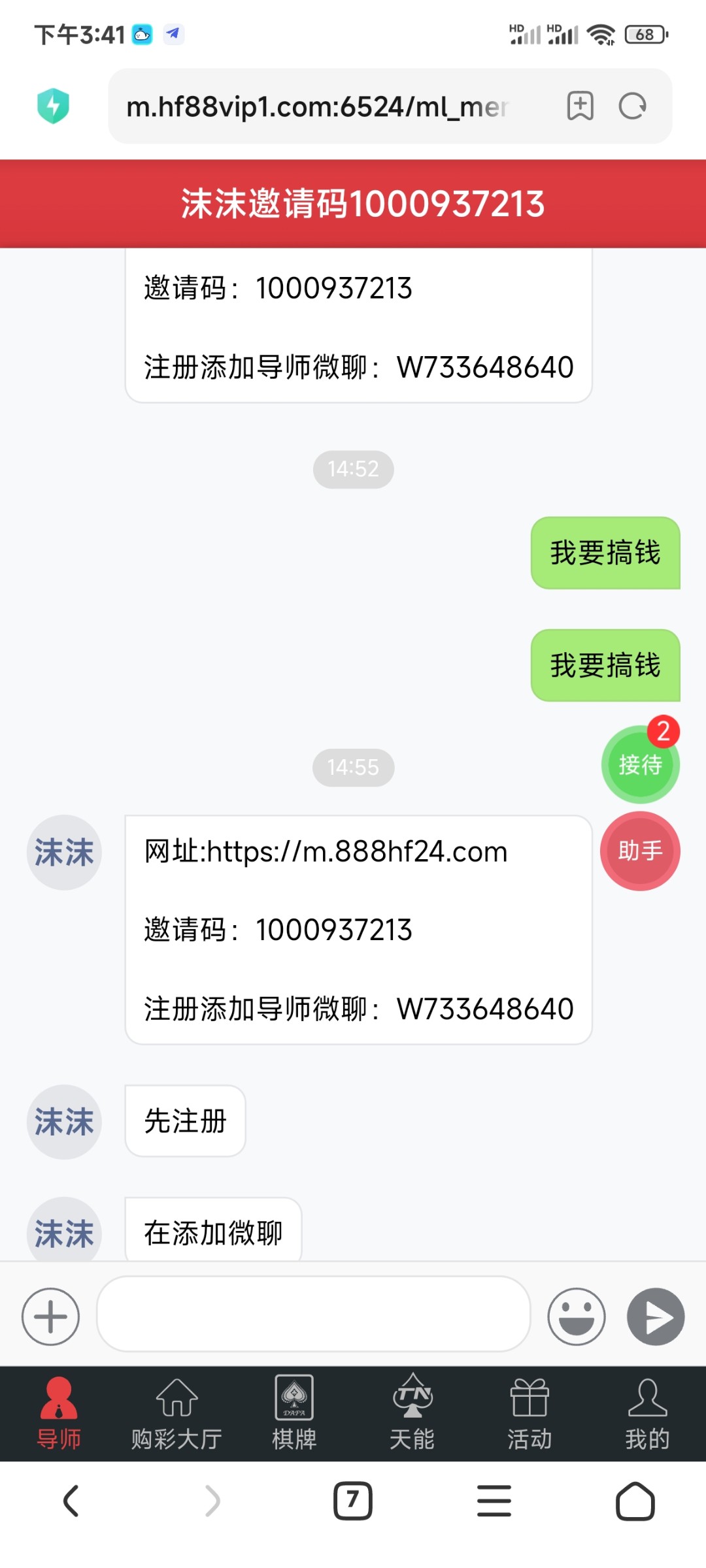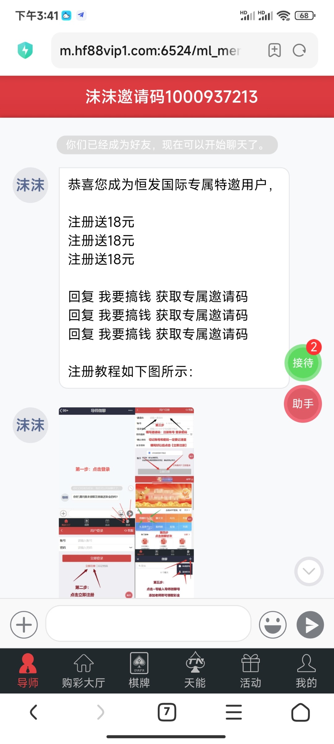 恒发彩票注册送18网址 628754.cc 我是打电话过来的,告诉了上面的网址,回复搞钱就可以,不查手机号好像,老哥们快去冲,