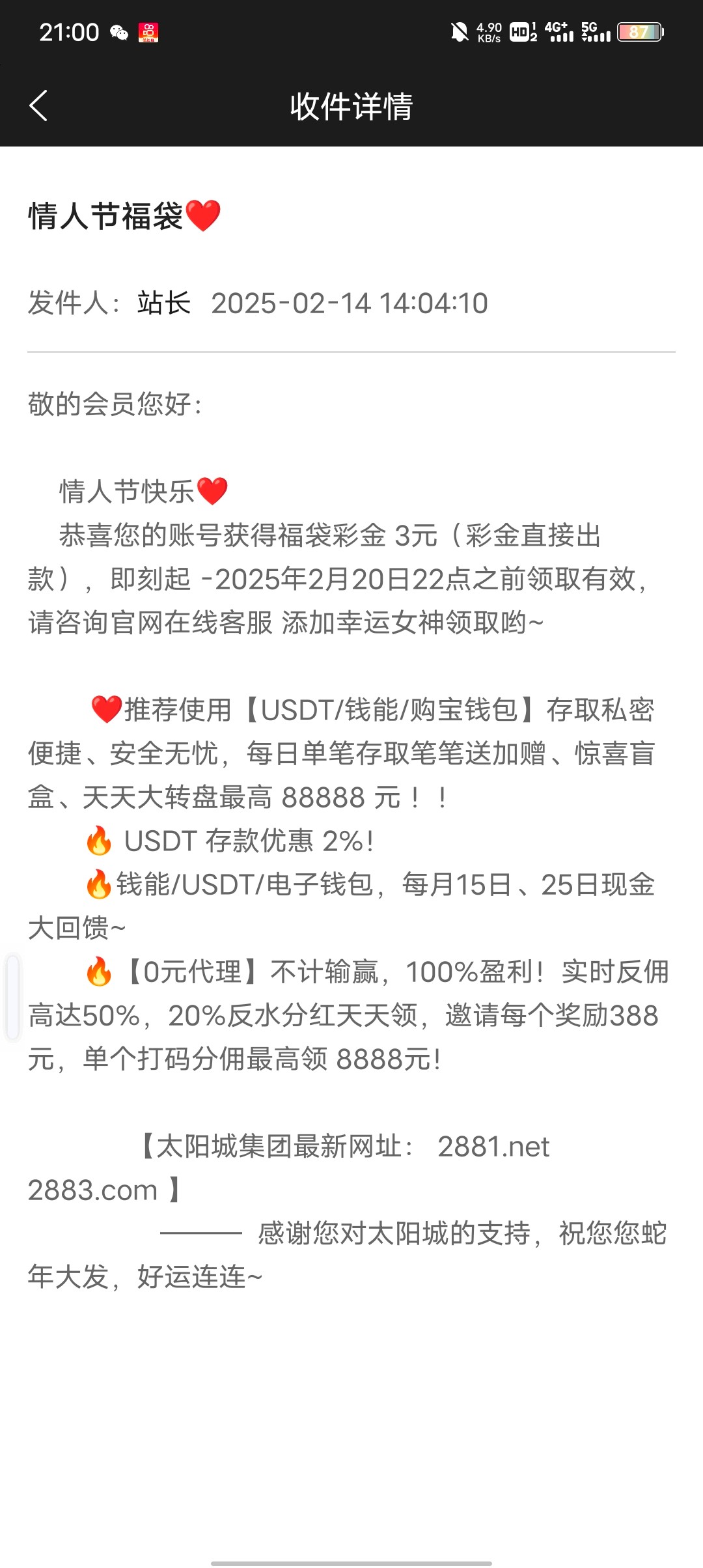【太阳城2018】—✅—情人节礼金