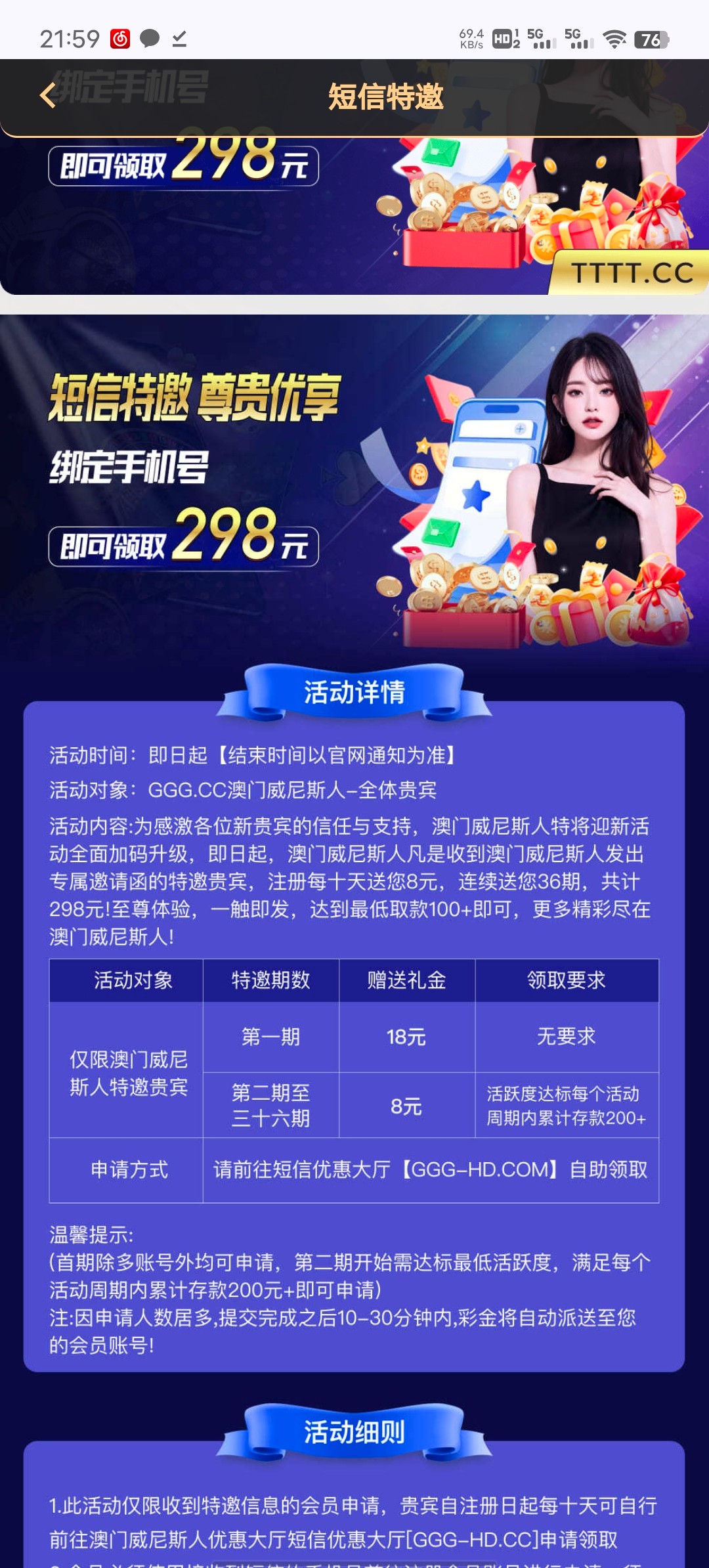 活动详细看图,我是老用户优惠 看见的。申请有个备注的,备注自己的号码。链接 GGG.cc